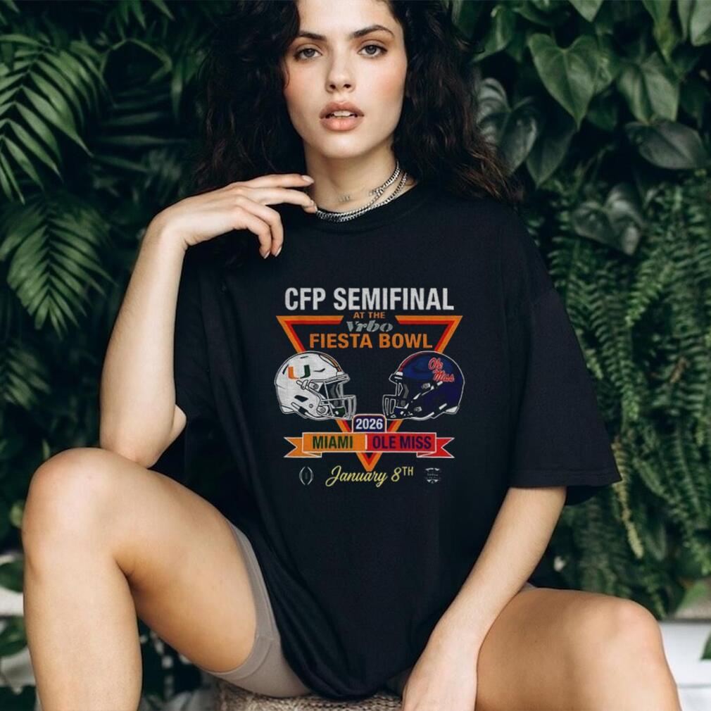 ()Miami Hurricanes vs Ole Miss Rebels Football CFP Semifinal at the Vrbo Fiesta Bowl 2026 shirt, Sport T-shirt and Funny T-shirt