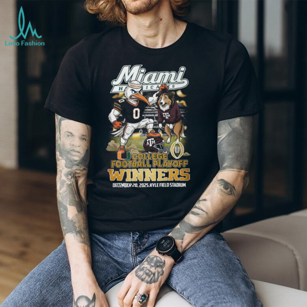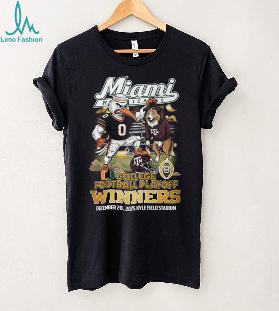 ()Miami Hurricanes vs Texas AM Aggies College Football Playoff Winners 2025 Mascot T Shirt, Treat yourself or make a great gift for your loved ones