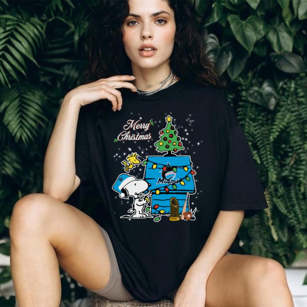 This shirt is perfect for Miami Marlins fans of all ages, especially those who love Snoopy and the Peanuts gang. Wear it to holiday parties, baseball games, or as a fun, festive outfit during Christmas celebrations. It also makes a great gift for the Marlins-loving kid in your life! Check second images from the product to make the content more vivid.