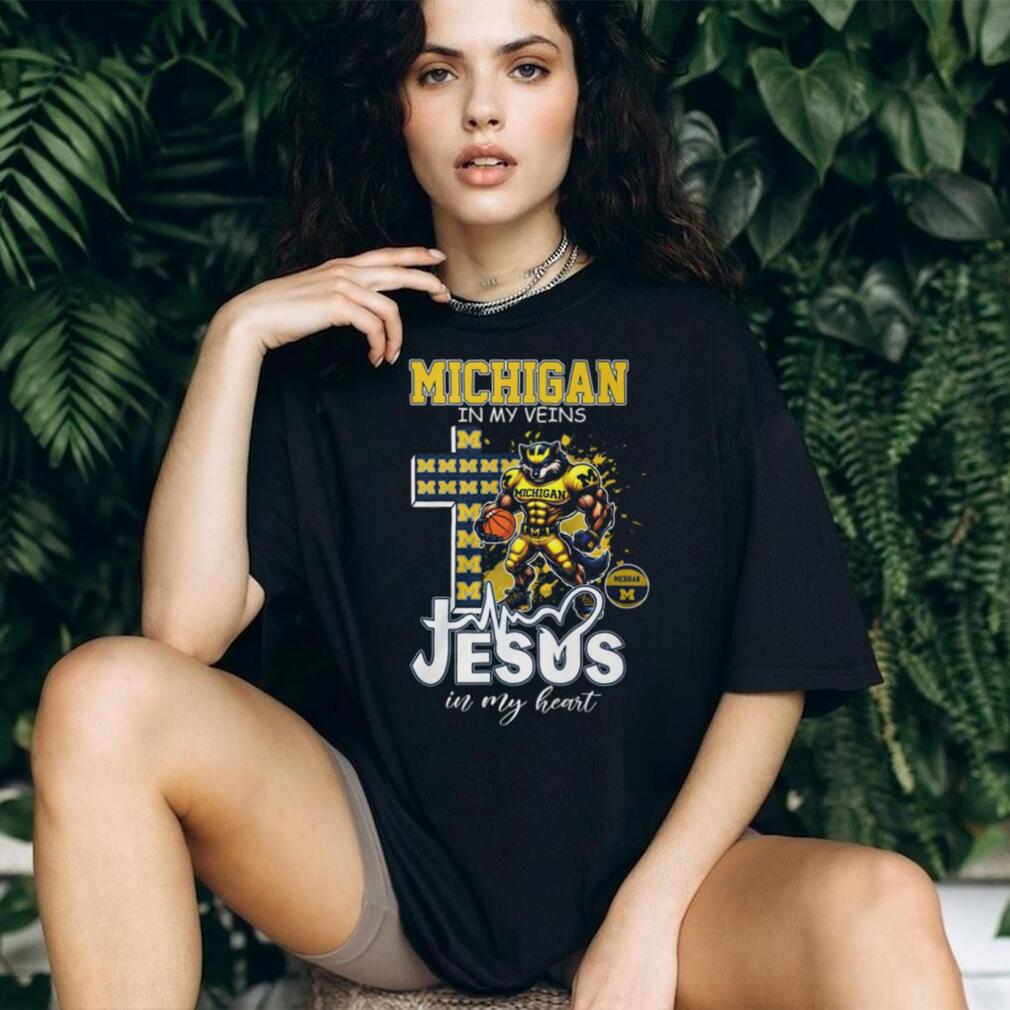 (Michigan In My Veins Jesus In My Heart Wolverine Basketball T Shirt)Michigan In My Veins Jesus In My Heart Wolverine Basketball T Shirt, Treat yourself or make a great gift for your loved ones