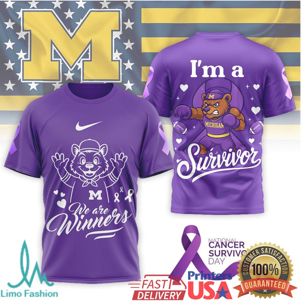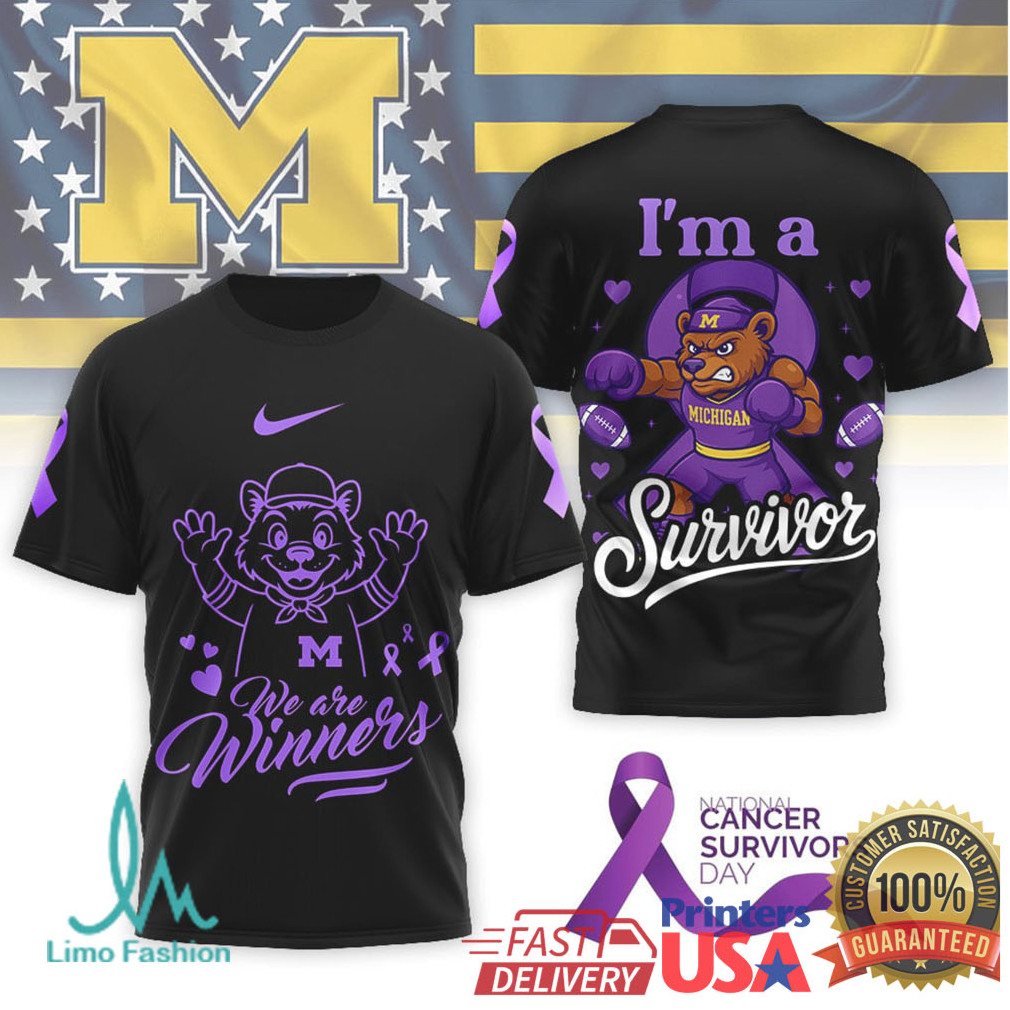 This isn’t just any Michigan Wolverines t-shirt. Featuring a bold “I’m a Survivor” message intertwined with iconic Wolverines imagery, it’s designed to inspire. The comfortable fabric ensures you can wear it all day, whether you’re cheering from the stands, attending a cancer awareness walk, or simply enjoying a casual day out. The graphic is carefully printed to last, wash after wash, ensuring your message of support remains clear. Available in various sizes, it offers a relaxed fit for broad appeal.
