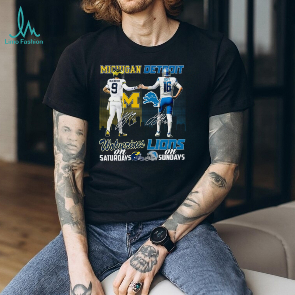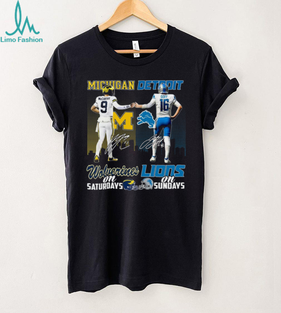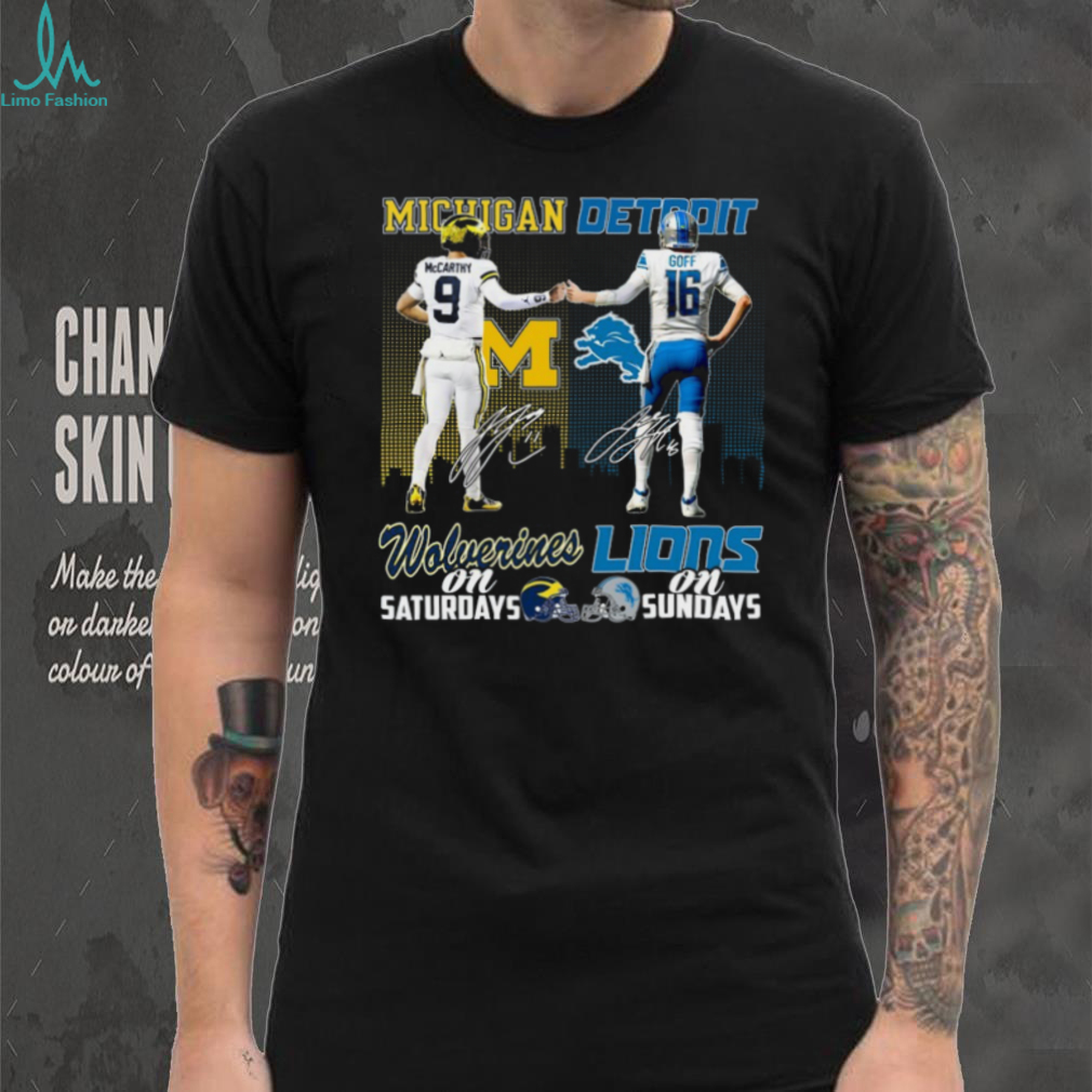 Product Care for Your Michigan Wolverines On Saturdays and Detroit Lions On Sundays T shirt: