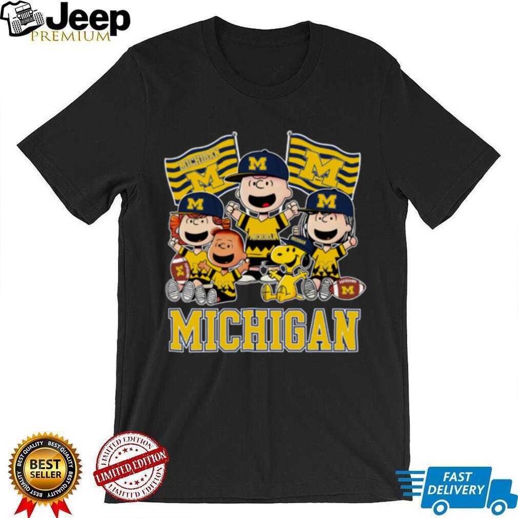 Are you a die-hard Michigan Wolverines fan with a soft spot for classic cartoons? Then this Michigan Wolverines Shop Snoopy Charlie Brown And Friends Wolverines Flags T Shirt is made for you! Imagine the timeless charm of Snoopy and Charlie Brown blending seamlessly with the fierce spirit of the Wolverines. This isn’t just a shirt; it’s a nostalgic trip down memory lane combined with your unwavering team pride, perfect for showcasing your unique fan identity.
