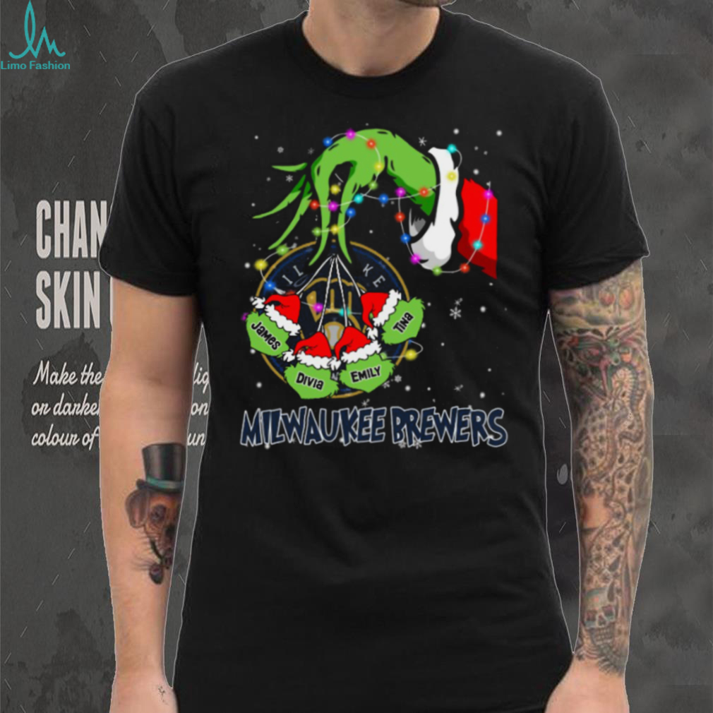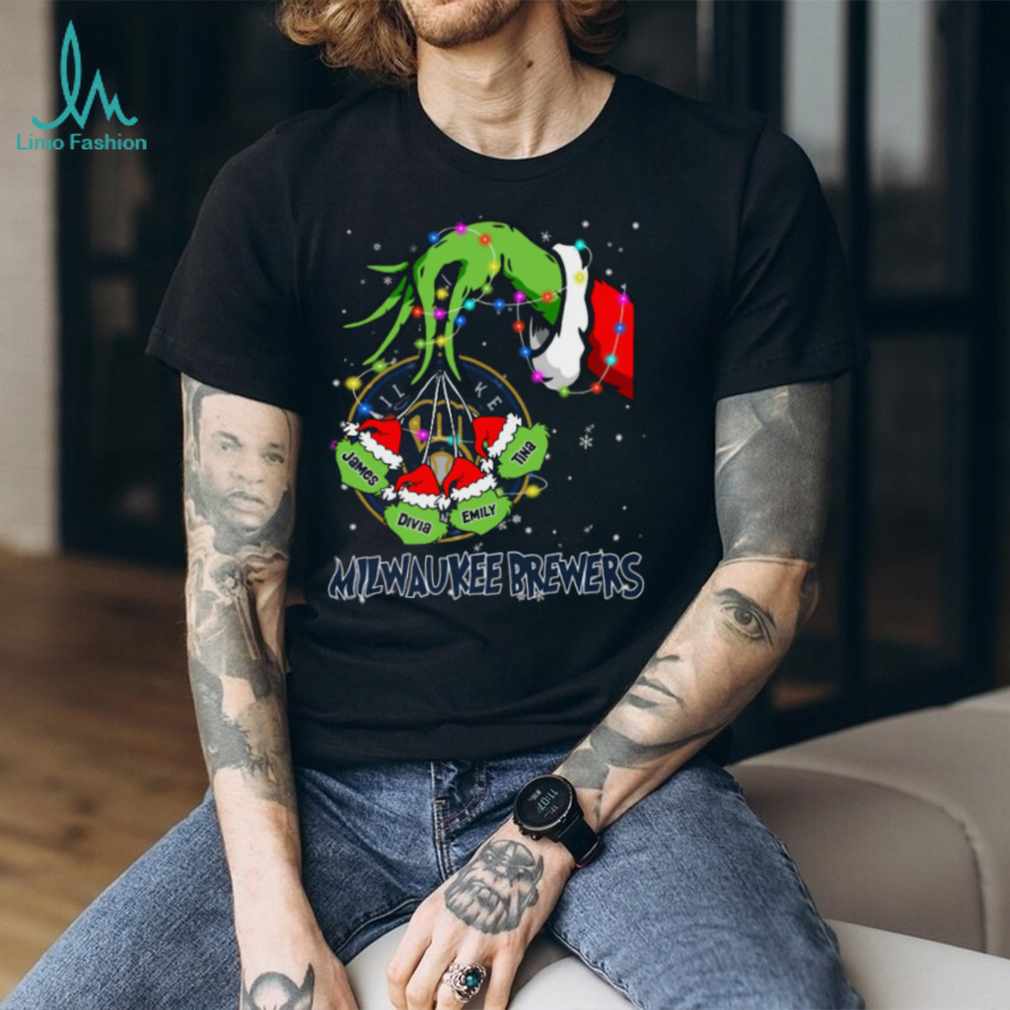 Milwaukee Brewers Grinch Christmas Lights Tee – MLB Baseball Custom Name Fan Gift Holiday Shirt
