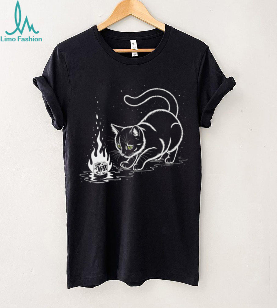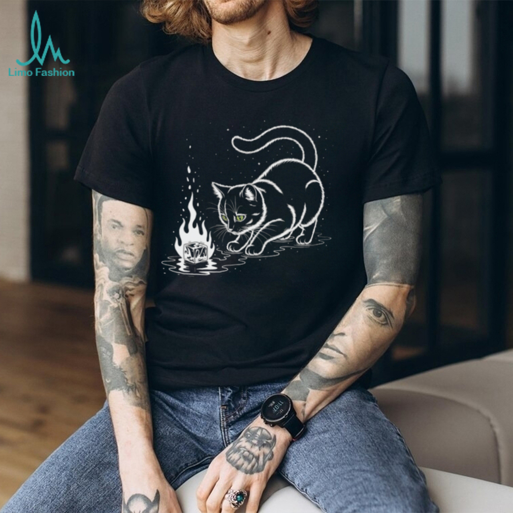 (Minimalist Black Cat Watching Flaming Ice Cube T Shirt)Minimalist Black Cat Watching Flaming Ice Cube T Shirt, Treat yourself or make a great gift for your loved ones