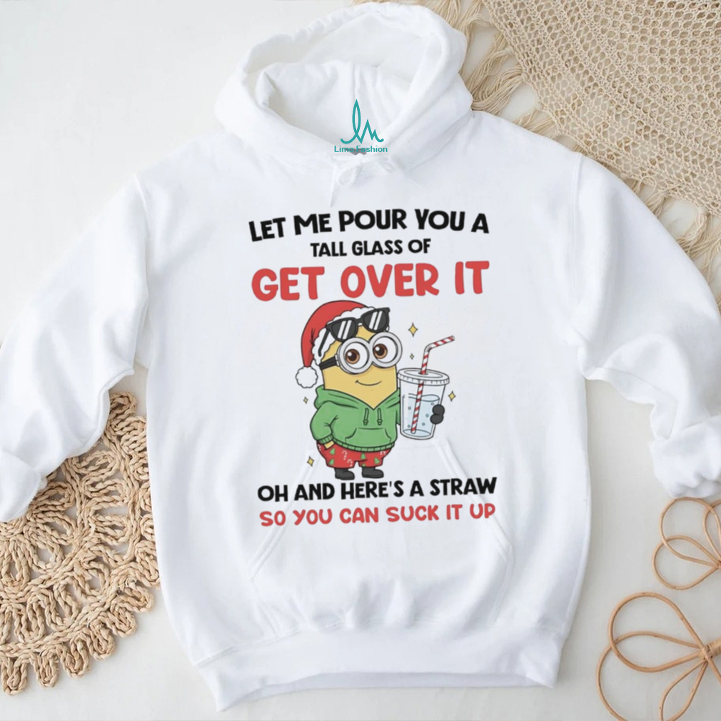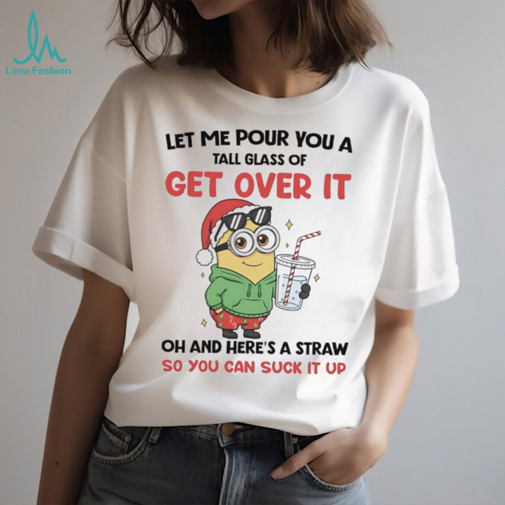 Holiday stress getting to you? This “Minions let me pour you a tall glass of get over it Christmas shirt” is the perfect way to lighten the mood! Featuring those lovable yellow guys with a sassy holiday message, it’s guaranteed to bring a smile (or at least a smirk) to everyone’s face. Because sometimes, you just need to tell the holiday drama to “get over it!”