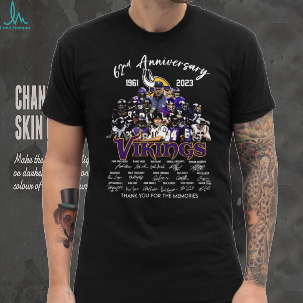 What Makes This Minnesota Vikings 62nd Anniversary 1961 2023 T Shirt Thank You For The Memories, Player Signatures & Roster Tee Epic