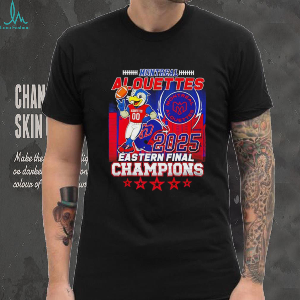 The Montreal Alouettes 2025 Easter Final Champions mascot shirt features a vibrant design with the team’s mascot, celebrating their victory. Made from a comfortable fabric, this shirt ensures you can support your team in style and comfort. Show your Alouettes pride with this exclusive shirt!