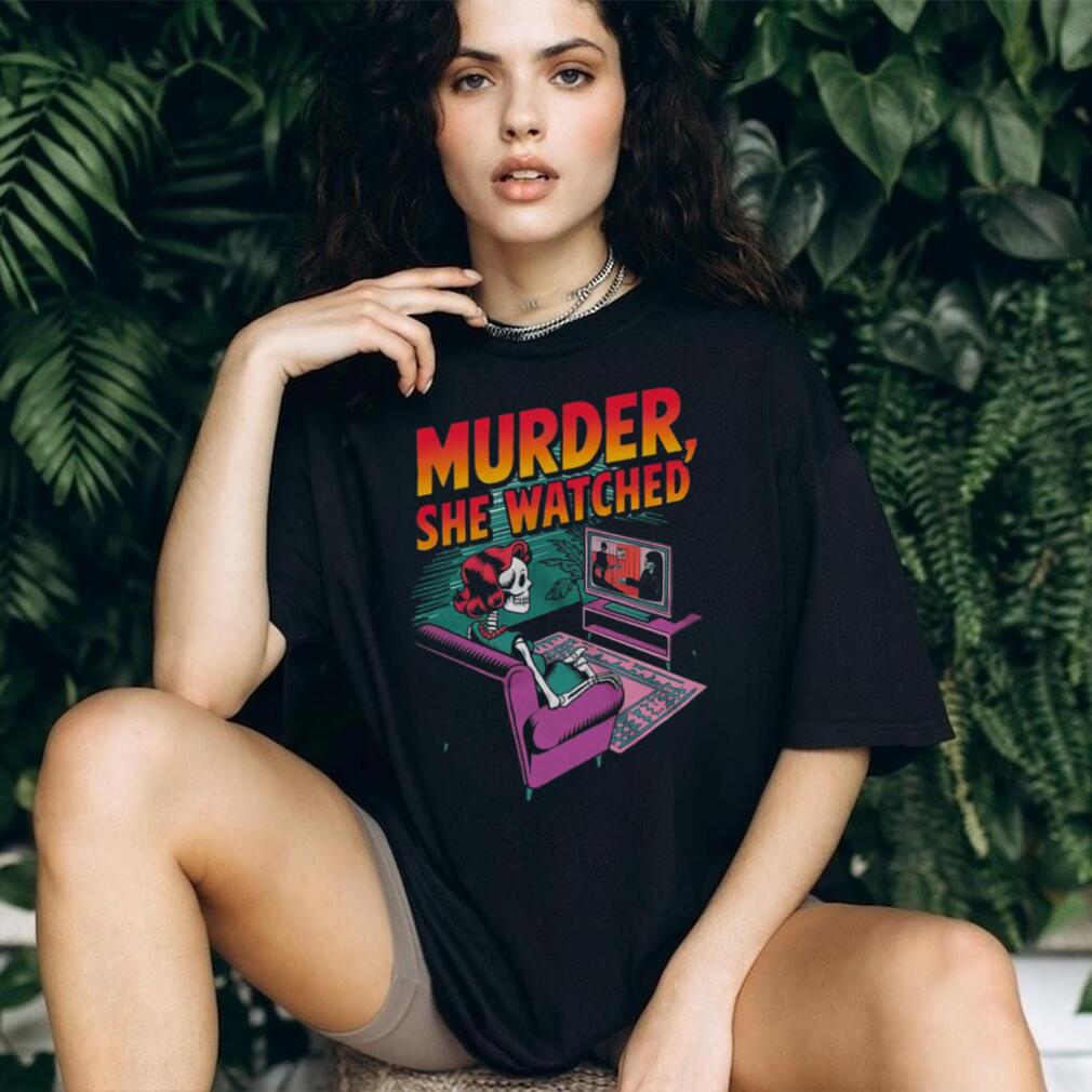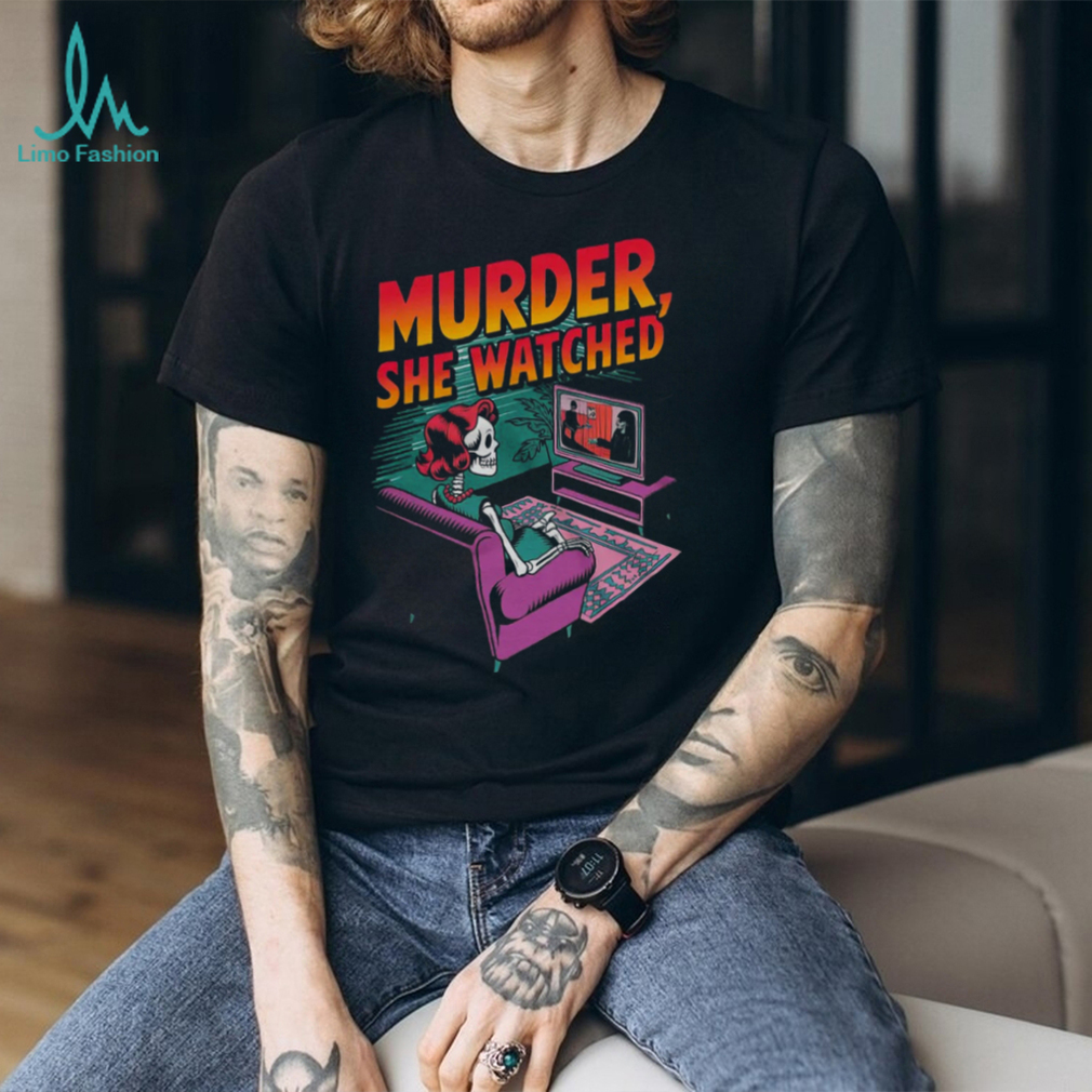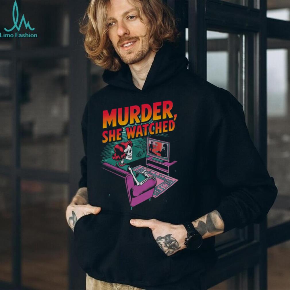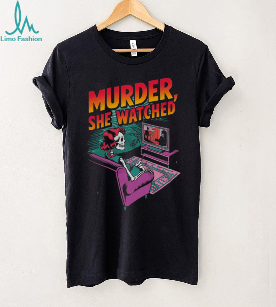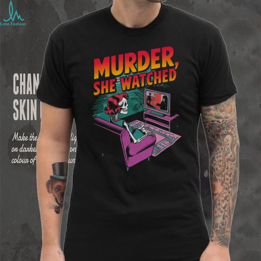 ()Murder She Watched Retro Skeleton Watching TV True Crime Shirt, Treat yourself or make a great gift for your loved ones