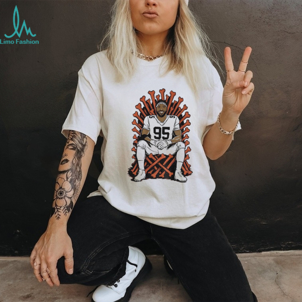 This Myles Garrett Cleveland Browns shirt is an essential for any loyal Browns fan, NFL defensive end enthusiast, or anyone who respects a dominant player. It’s perfect for game days, sports gatherings, or as a bold statement of your football fandom. The second image emphasizes its striking design. It also makes an exceptional gift for friends and family who celebrate Cleveland football and its star players. It’s more than just a tee; it’s a tribute to an unparalleled talent.