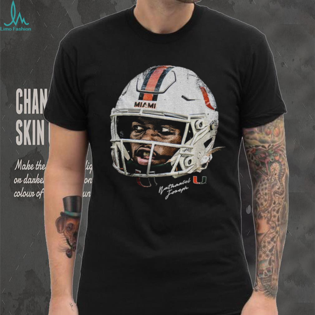 Get ready for the future of Miami Hurricanes football with this Nathaniel Joseph signature shirt! Featuring a bold helmet face design, this tee celebrates a rising star and shows your Hurricanes pride for the 2025 season.