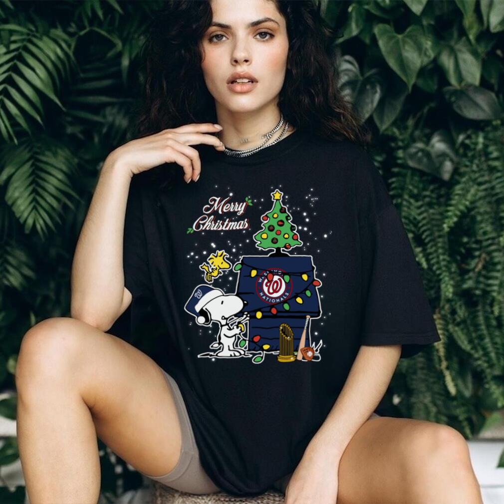 With each Nationals Shop Merry Christmas With Snoopy Baby Washington Nationals T Shirt, you are contributing to creating a green tree. To keep your Nationals Shop Merry Christmas With Snoopy Baby Washington Nationals T Shirt looking fresh and festive, machine wash it cold with similar colors. Tumble dry on a low setting. Avoid using bleach and do not iron directly on the design. This careful attention will help preserve the vibrant print and soft fabric for many cherished holiday seasons and baseball moments.