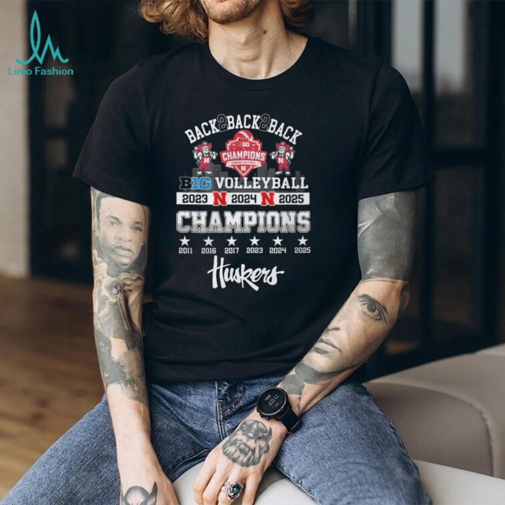 (Nebraska Huskers Volleyball Back To Back To Back Big Ten Champions 2023 2025 T Shirt)Nebraska Huskers Volleyball Back To Back To Back Big Ten Champions 2023 2025 T Shirt, Treat yourself or make a great gift for your loved ones