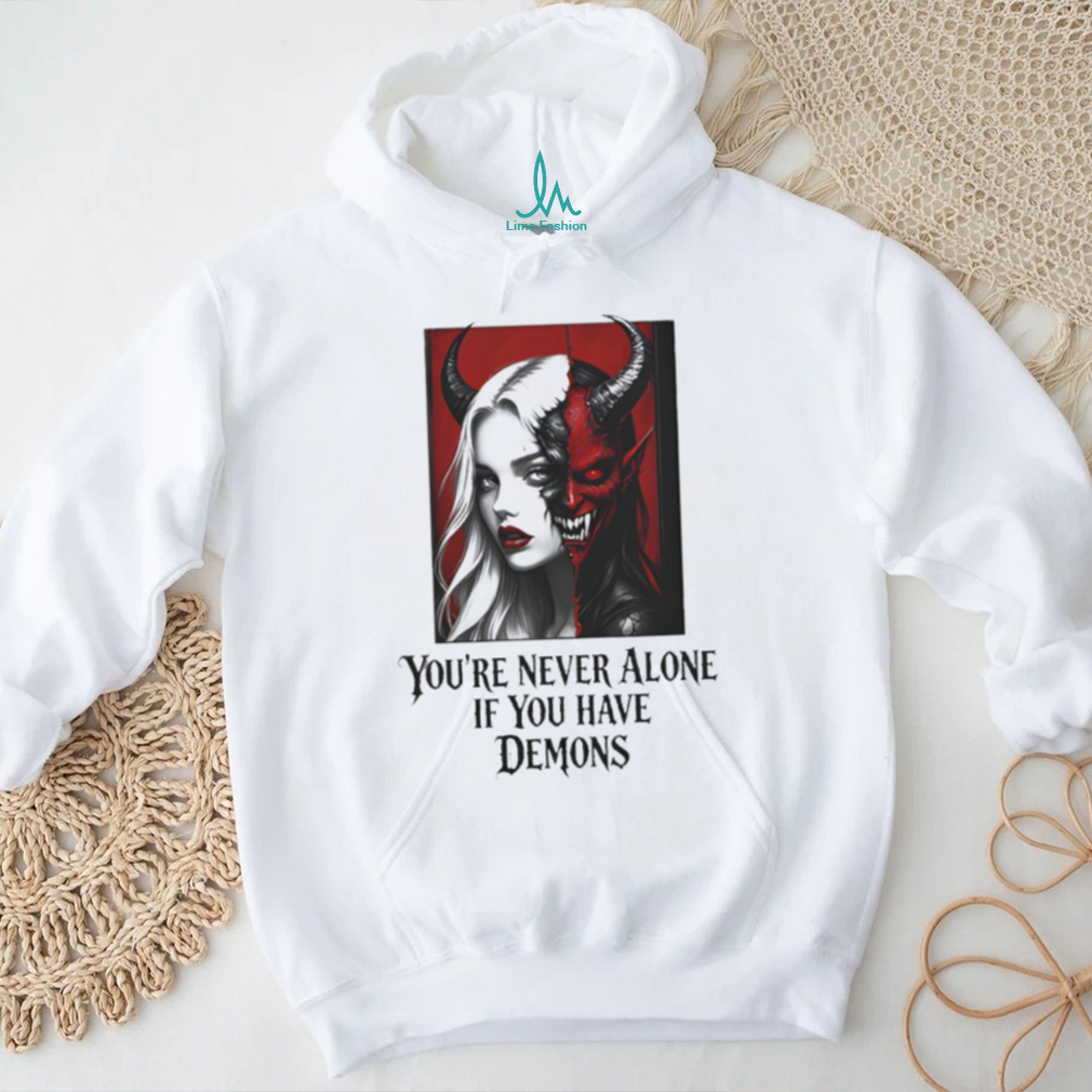 ()Never Alone If You Have Demons Gothic Half Face Woman Tee, Treat yourself or make a great gift for your loved ones