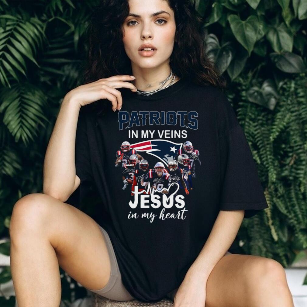 Who Rocks This Best with New England Patriots In My Veins Jesus In My Heart T Shirt