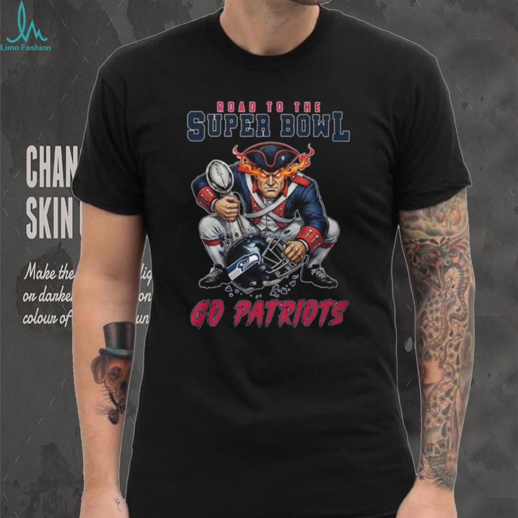 (New England Patriots Road To The Super Bowl Revolutionary Soldier Mascot T Shirt)New England Patriots Road To The Super Bowl Revolutionary Soldier Mascot T Shirt, Treat yourself or make a great gift for your loved ones