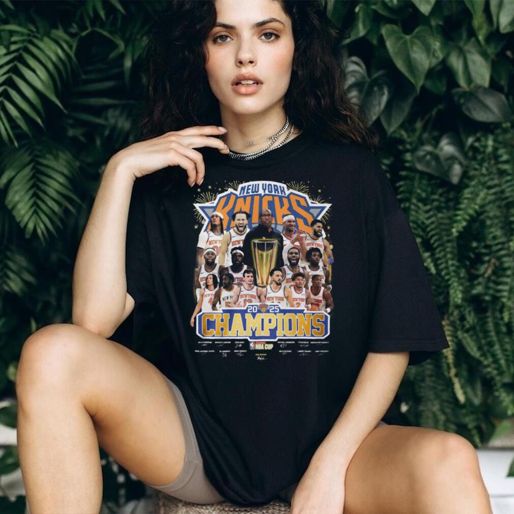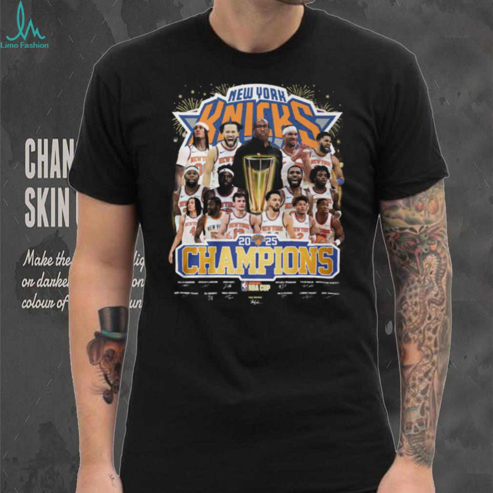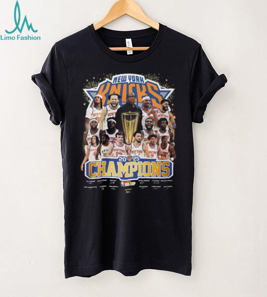 ()New York Knicks 2025 NBA Cup Champions Roster Signatures T Shirt, Treat yourself or make a great gift for your loved ones