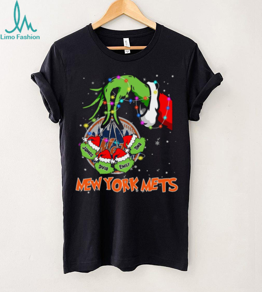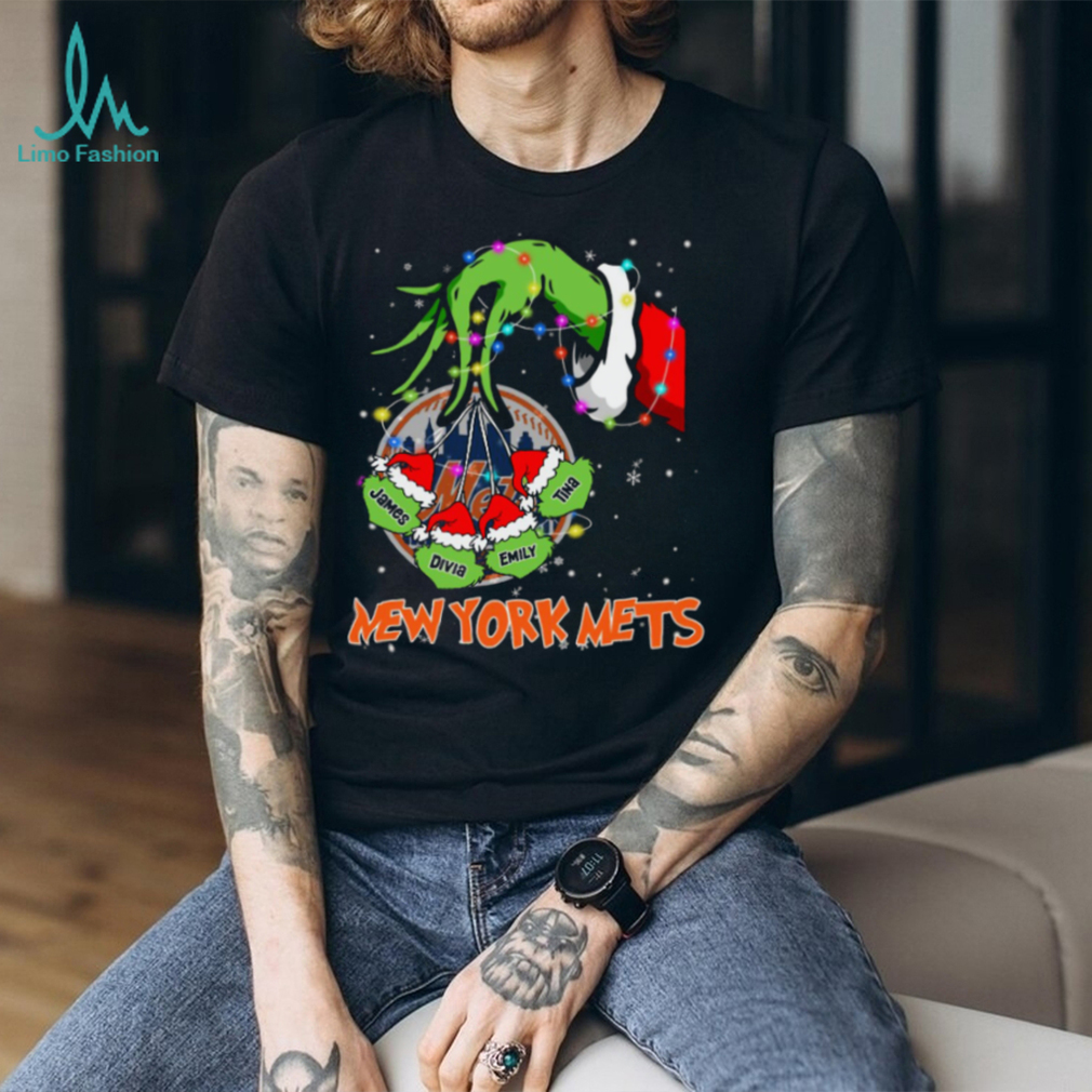 New York Mets Grinch Xmas Lights T Shirt – Custom Name MLB Fan Holiday Gift Tee for Baseball Lovers