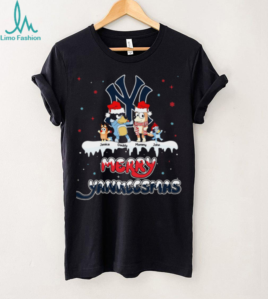 New York Yankees Holiday Bluey Family Tee – Personalized MLB Christmas Shirt – Custom Name Matching Outfit for Fans