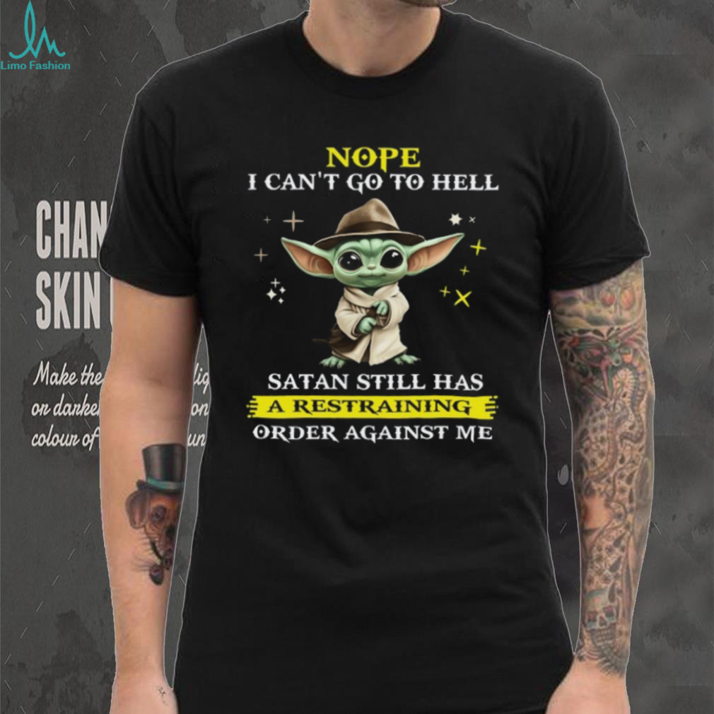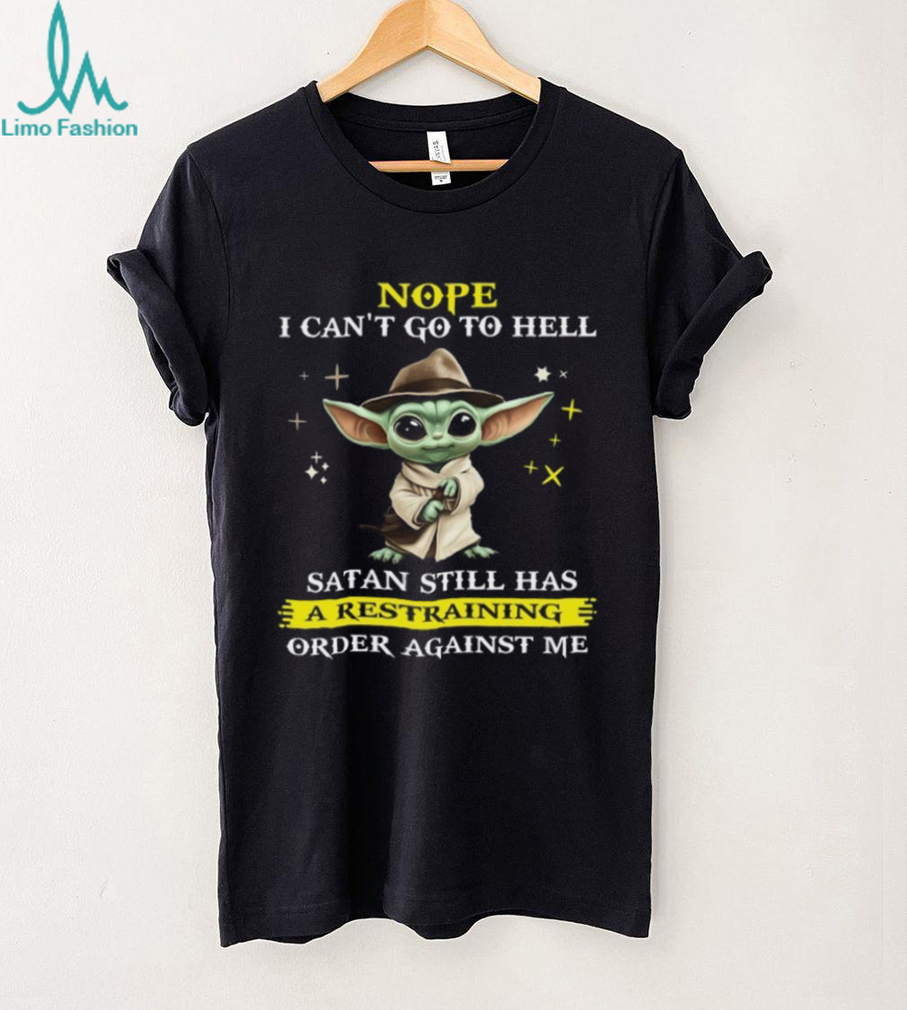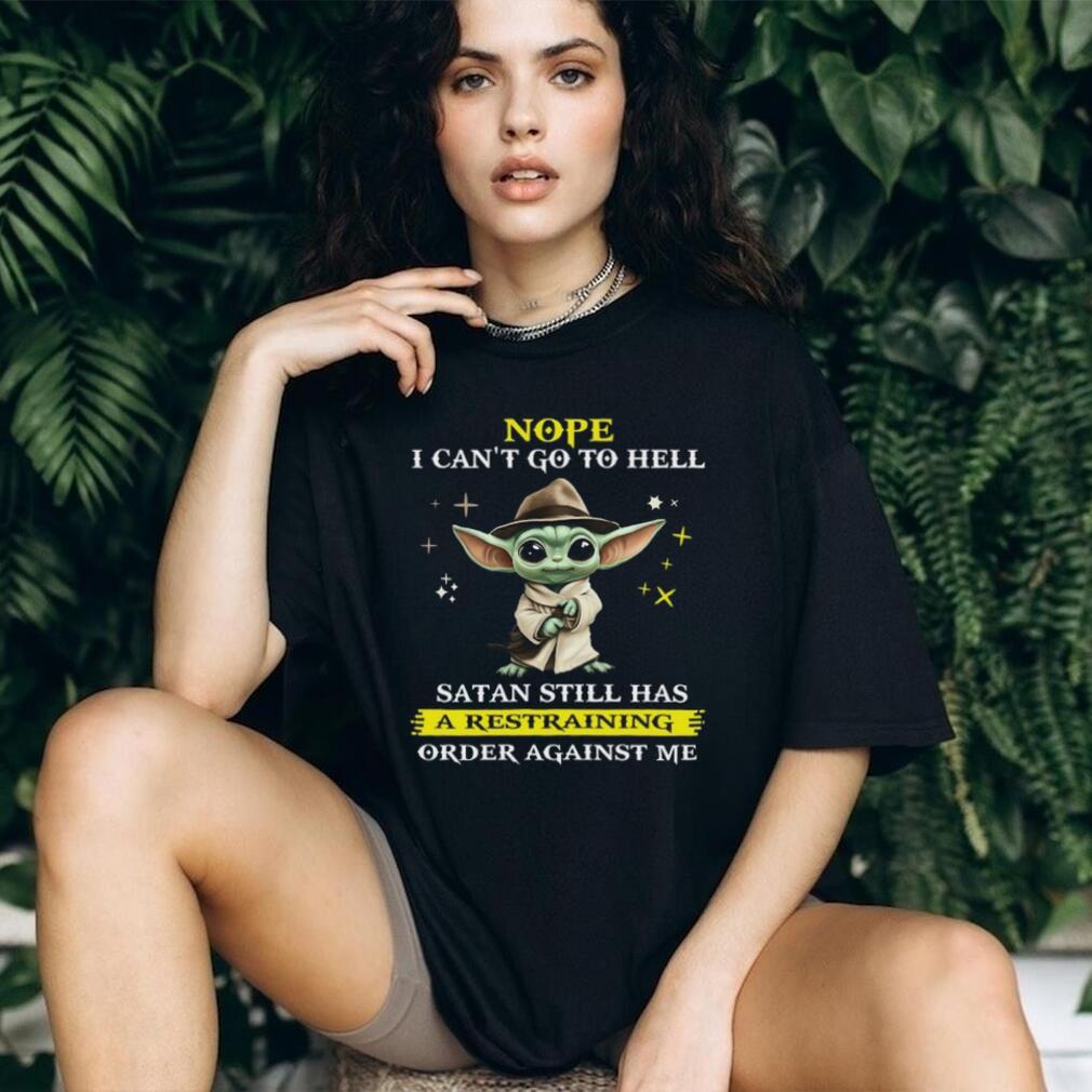 👕About Nope I Can't Go To Hell Satan Still Has A Restraining Order Against Me T Shirt