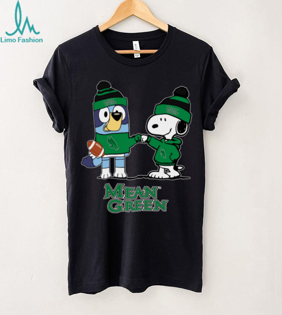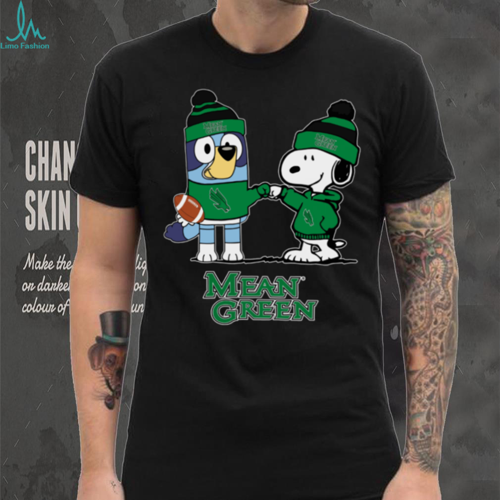 Show your North Texas Mean Green pride with a festive twist! This North Texas Mean Green x Snoopy Bluey Christmas Football NCAA TShirt is the perfect way to combine your love for college football with the holiday spirit and the charm of Snoopy and Bluey.