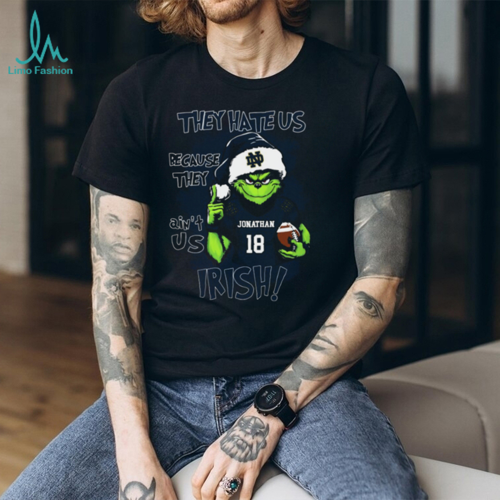 Notre Dame Fighting Irish Custom Name Grinch Tee – NCAA Football Christmas Shirt – Holiday Gift “They Hate Us Because They Ain’t Us”