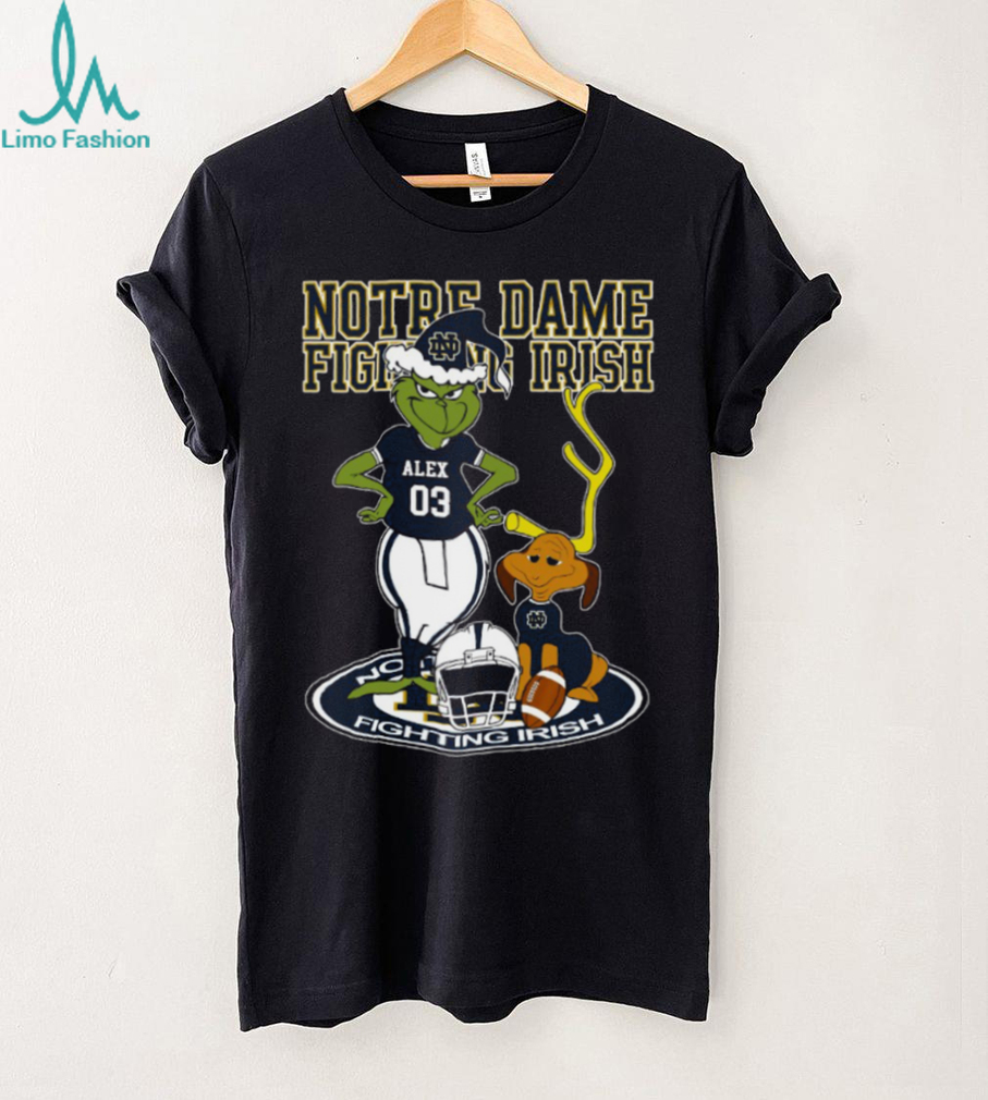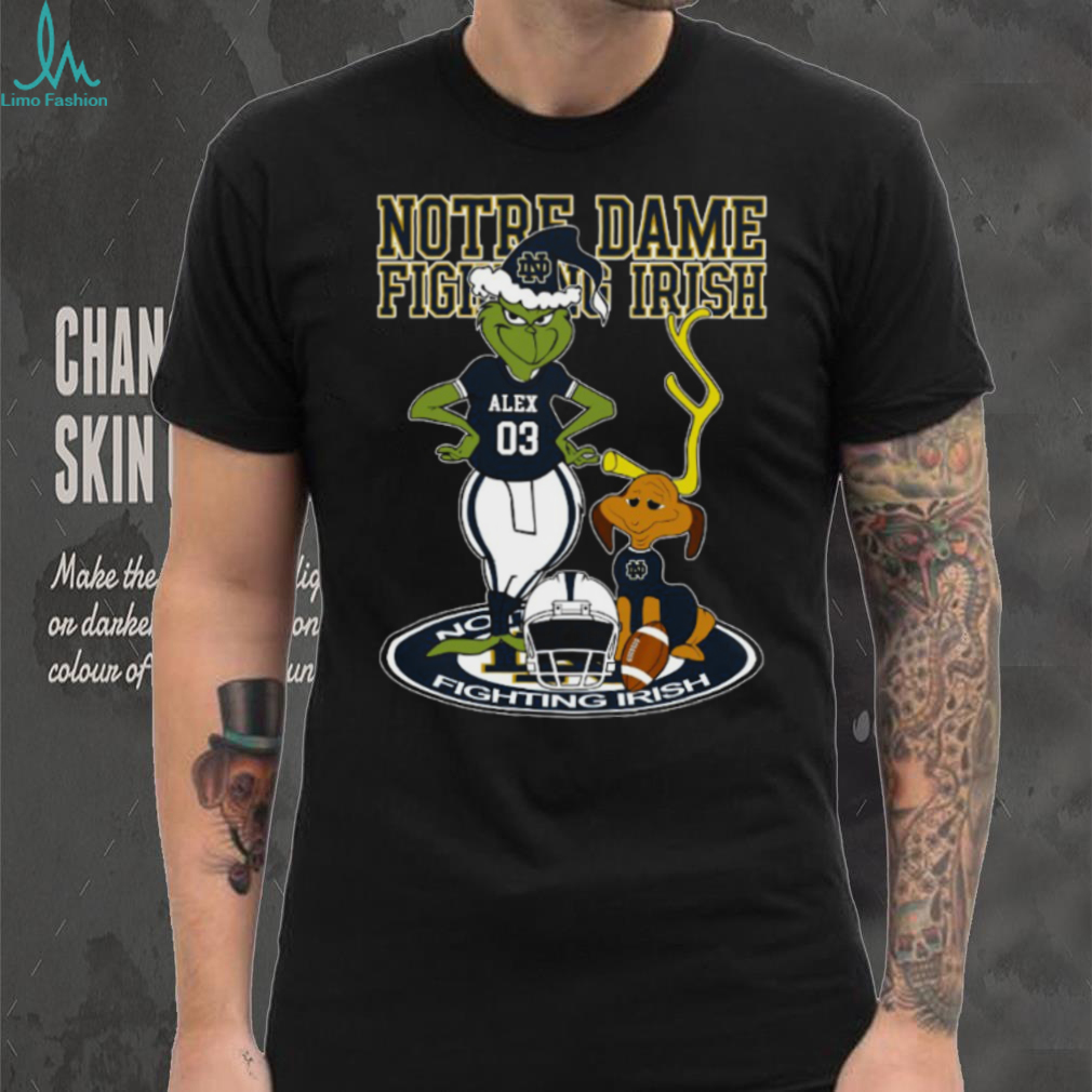 Notre Dame Fighting Irish Grinch with Dog Shirt – Custom Name NCAA Football Tee – Holiday Outfit & Personalized Gift for Fans