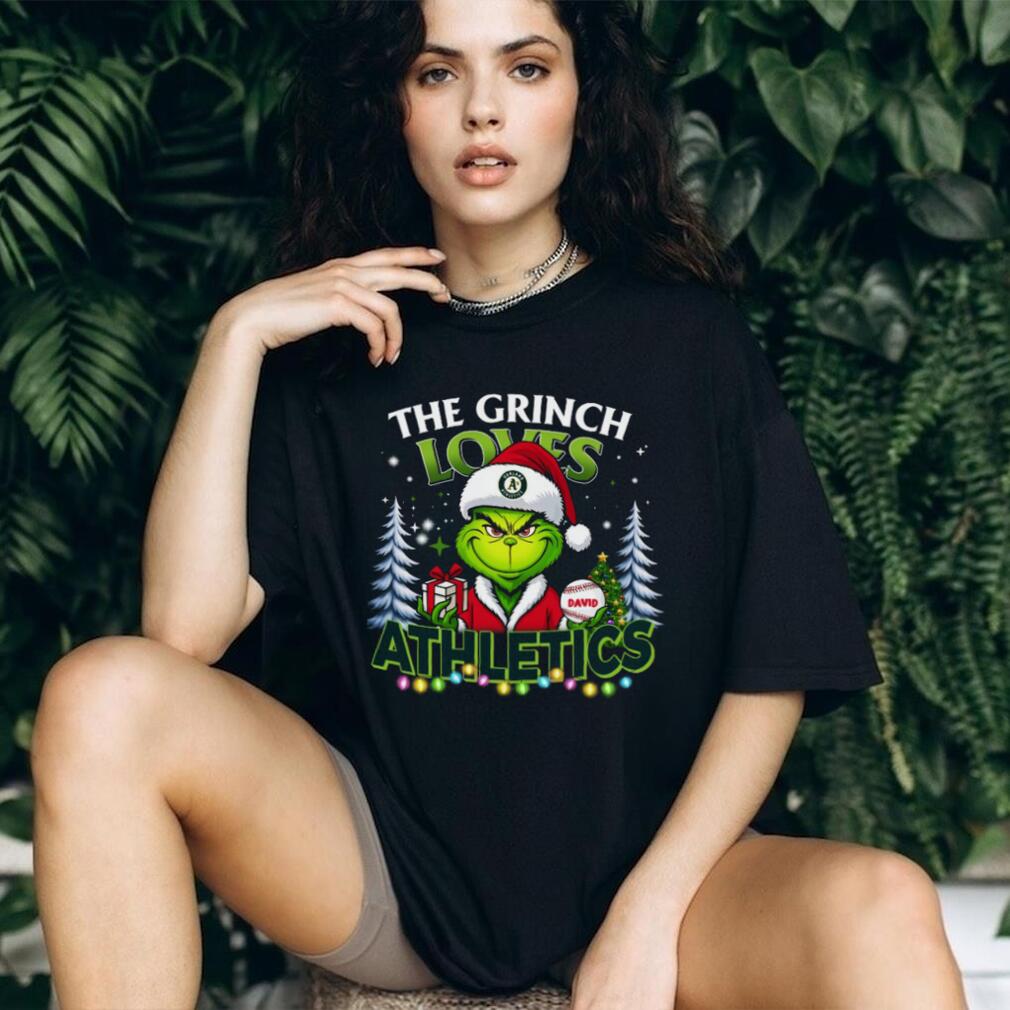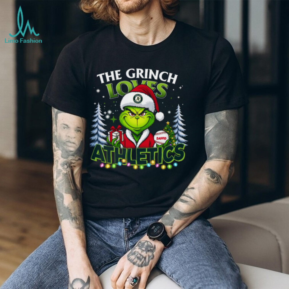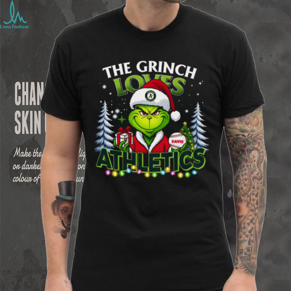 Oakland Athletics Grinch Christmas MLB Family Gift with Names  Shirt