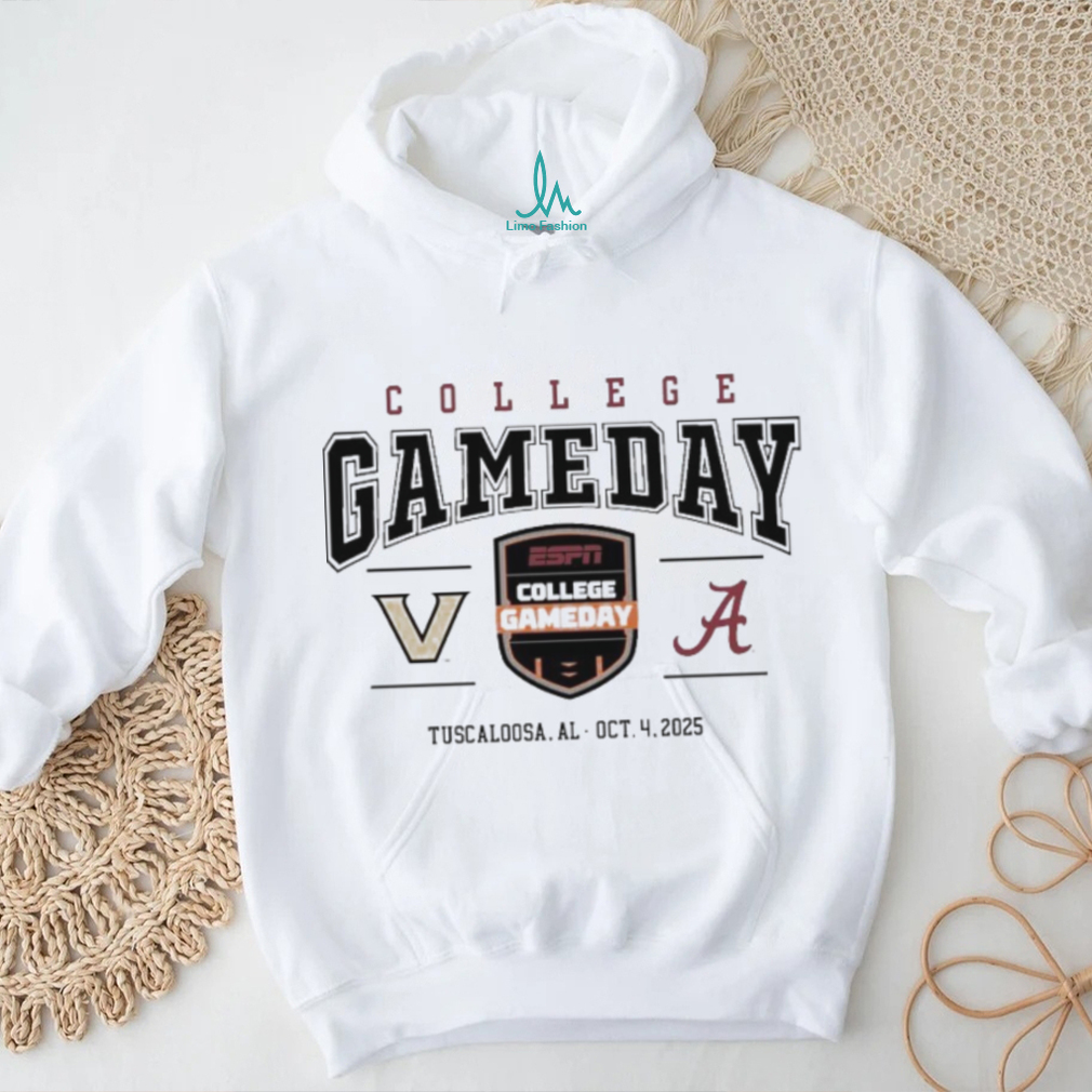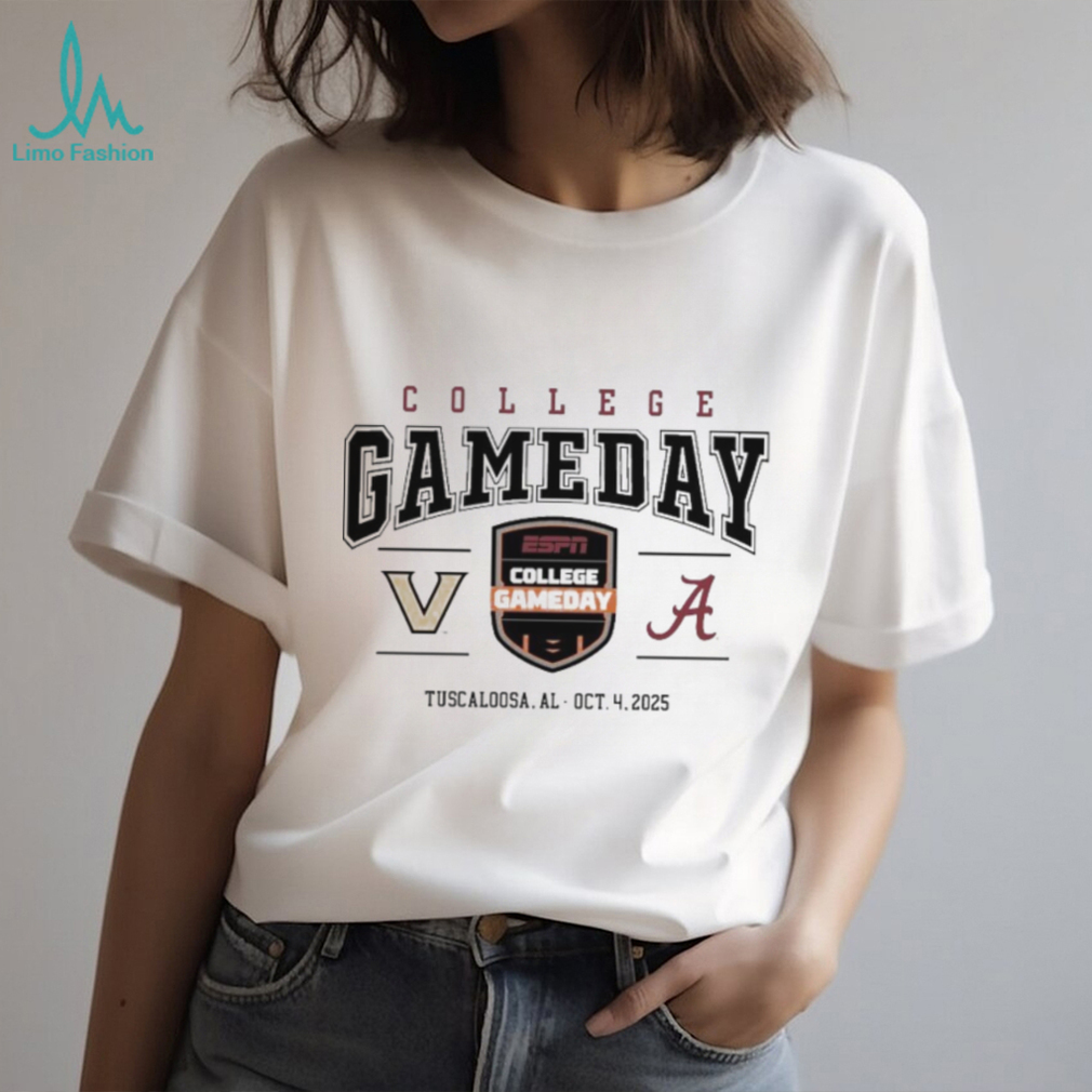 Show your Crimson Tide pride with this official College Gameday shirt! Celebrate Alabama’s clash against the Vandy Commodores in Tuscaloosa on October 4, 2025. This tee is perfect for wearing to the game, tailgating, or just showing your support for the Tide wherever you go. Roll Tide!