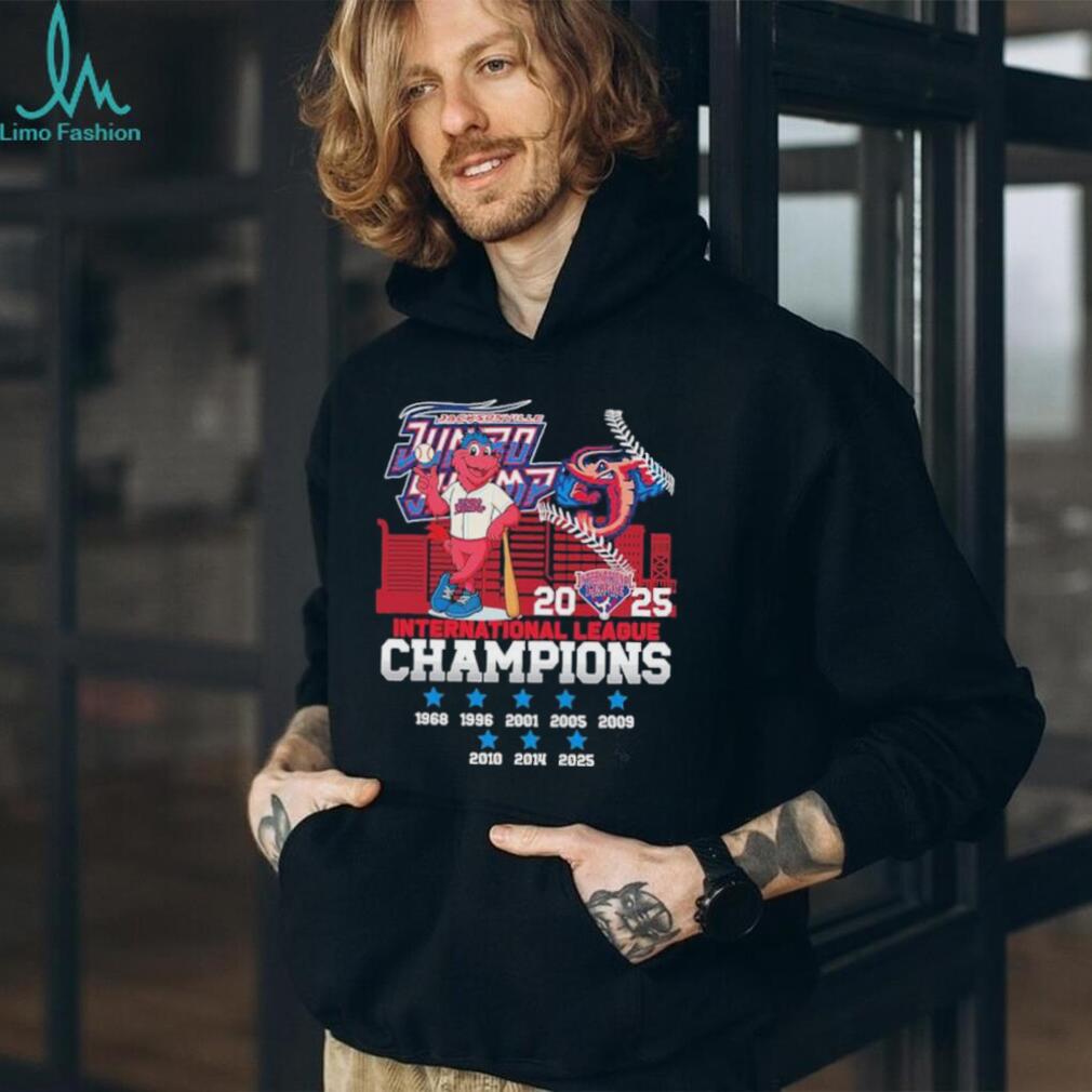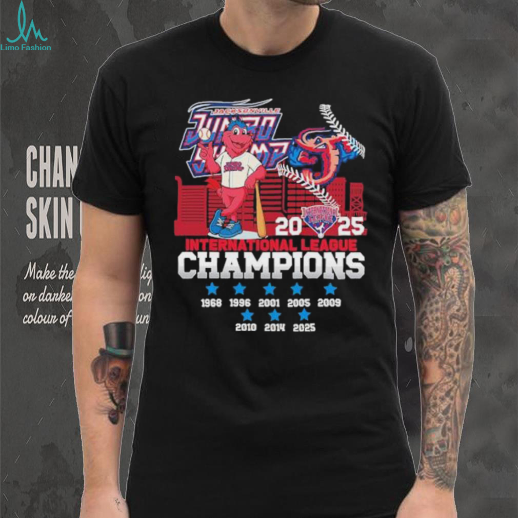 This Official Jacksonville Jumbo Shrimp Mascot 2025 International League Champions Shirt captures the thrill of the Shrimp’s championship run. It solves the need for fans to show their team pride and celebrate a historic season. Imagine wearing this shirt to the ballpark and reliving the excitement of the championship victory! Made from a soft and durable cotton blend, this shirt ensures comfort and longevity. Available in sizes S-3XL.