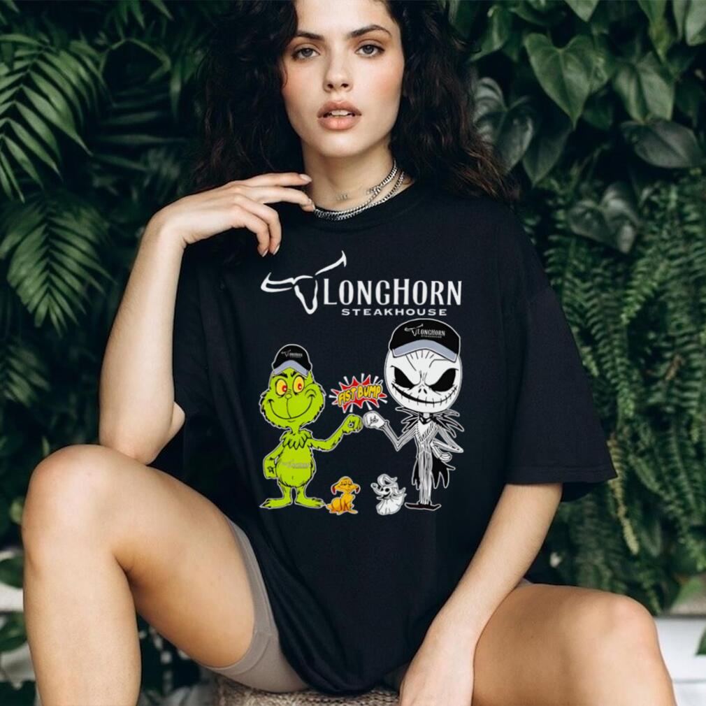 Get ready for a Halloween mashup like no other! This Official Longhorn Steakhouse Merch Grinch And Jack Skellington Fist Bump Longhorn Steakhouse Halloween Hoodie combines the spooky fun of Halloween with your favorite steakhouse. Imagine yourself at a Halloween party, a casual night out, or even just trick-or-treating, showcasing your love for Longhorn Steakhouse, the Grinch, and Jack Skellington. It’s a unique way to celebrate Halloween and stand out from the crowd. This hoodie isn’t just clothing; it’s a conversation starter and a statement of your eclectic tastes!