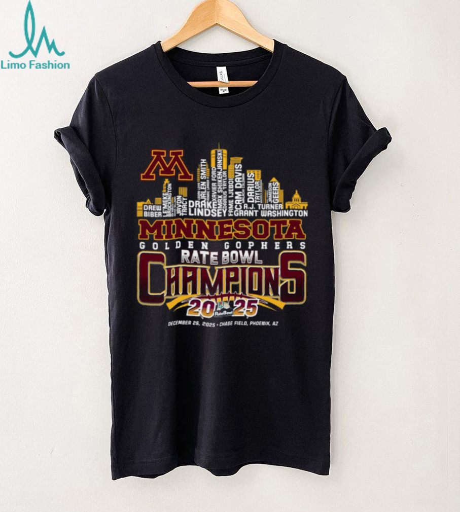 ()Official Minnesota Golden Gophers Skyline Names 2025 Rate Bowl Champions Shirt, Treat yourself or make a great gift for your loved ones