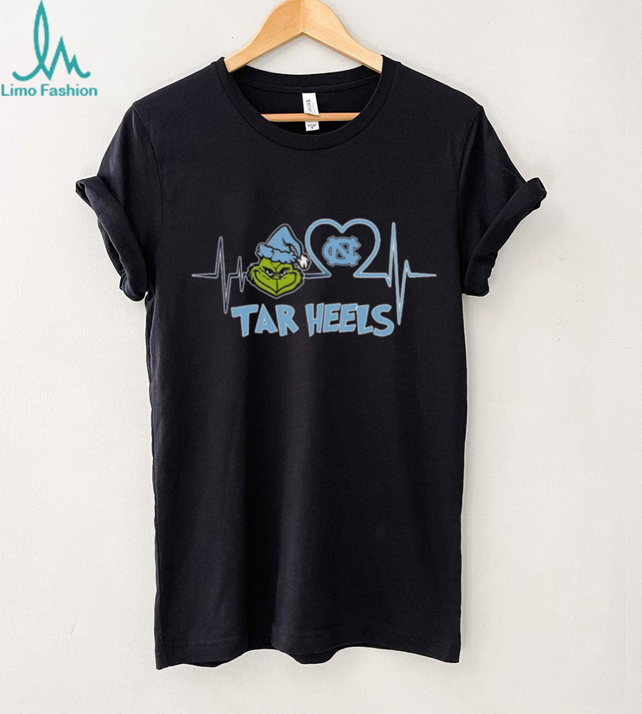 With each Official North Carolina Tar Heels x Grinch Santa Heartbeat Love Logo Merry Christmas Shirt, you are contributing to creating a green tree. To keep your shirt looking its best, machine wash cold and tumble dry on low.