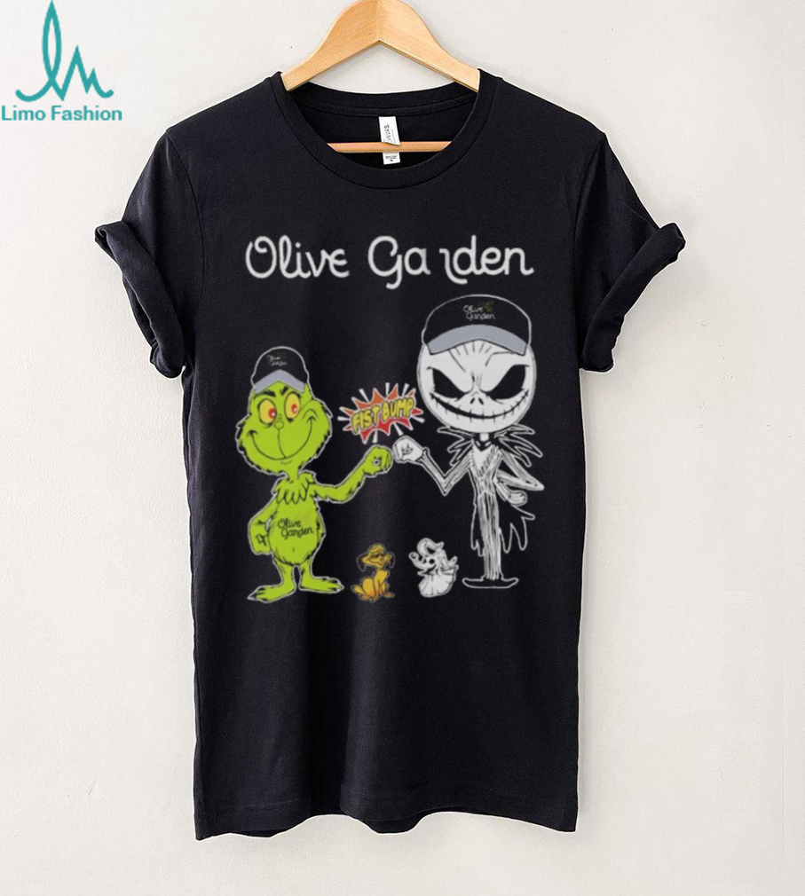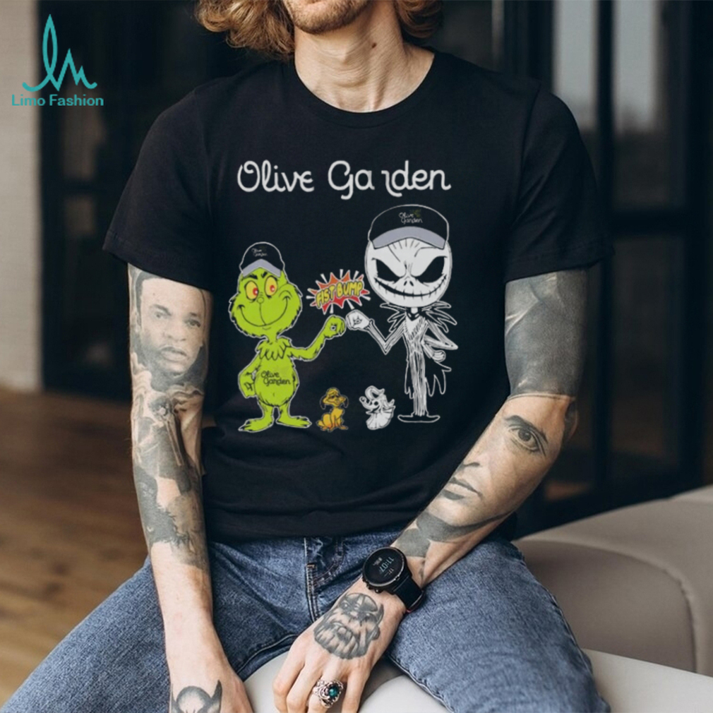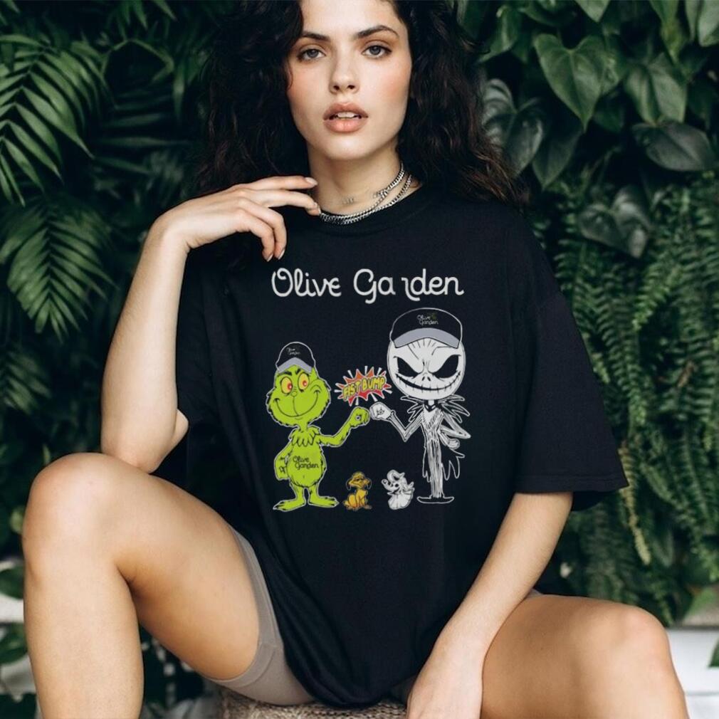 Can you imagine Jack Skellington and the Grinch meeting up at Olive Garden for some breadsticks and Halloween mischief? Well, now you can wear that unlikely friendship on this Official Olive Garden Merch Grinch And Jack Skellington Fist Olive Garden Halloween Hoodie. It’s a crazy combination of spooky and savory, perfect for those who like their holidays with a side of unlimited soup, salad, and breadsticks. This hoodie is a guaranteed conversation starter for Halloween parties, casual nights, or just showing off your unique sense of humor.