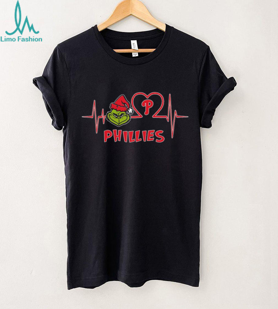 Official Philadelphia Phillies x Grinch Santa Heartbeat Love Logo Merry Christmas Shirt