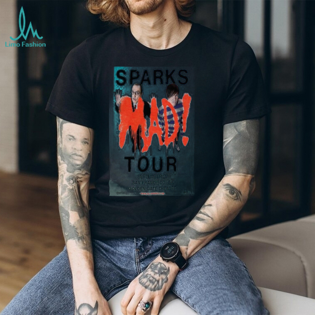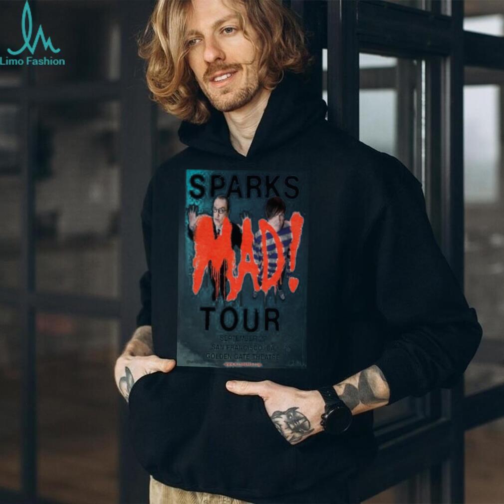 Relive the magic of the Sparks concert at the Golden Gate Theatre with this official poster shirt! Featuring Madi, this tee commemorates the unforgettable Sept 27 202 performance. A must-have for any die-hard Sparks fan.