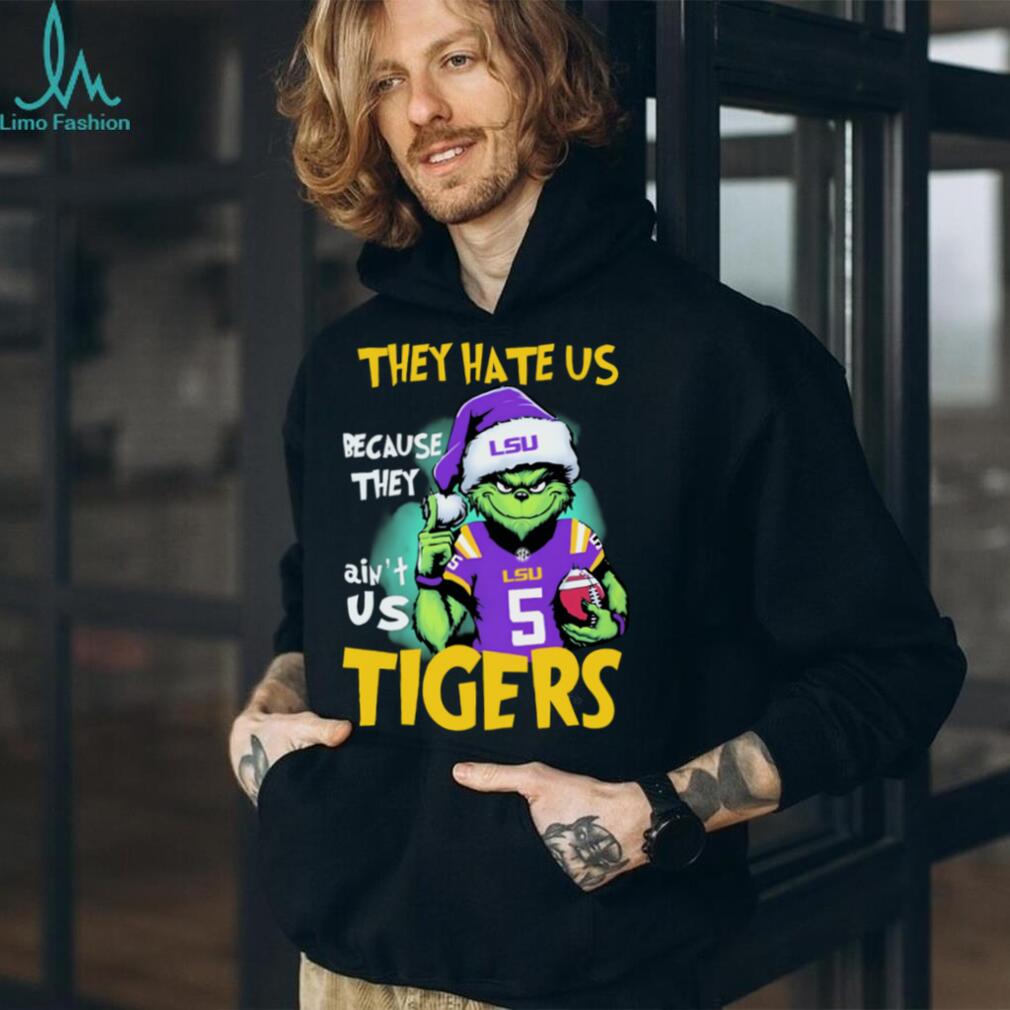 This Official The Grinch They Hate Us Because Ain’t Us LSU Tigers Christmas Shirt is more than a shirt; it’s a statement of football fandom and holiday grumpiness. This T-shirt will be a guaranteed winner at any Christmas gathering, or a Lions watch party! The soft and breathable material ensures comfort and it comes in a range of sizes, so everyone from your grumpy uncle to your fun-loving aunt can show off their team spirit. The high-quality print means you can keep wearing it season after season. Express your fandom of Detroit football and The Grinch with this one-of-a-kind tee!