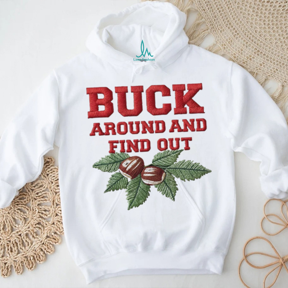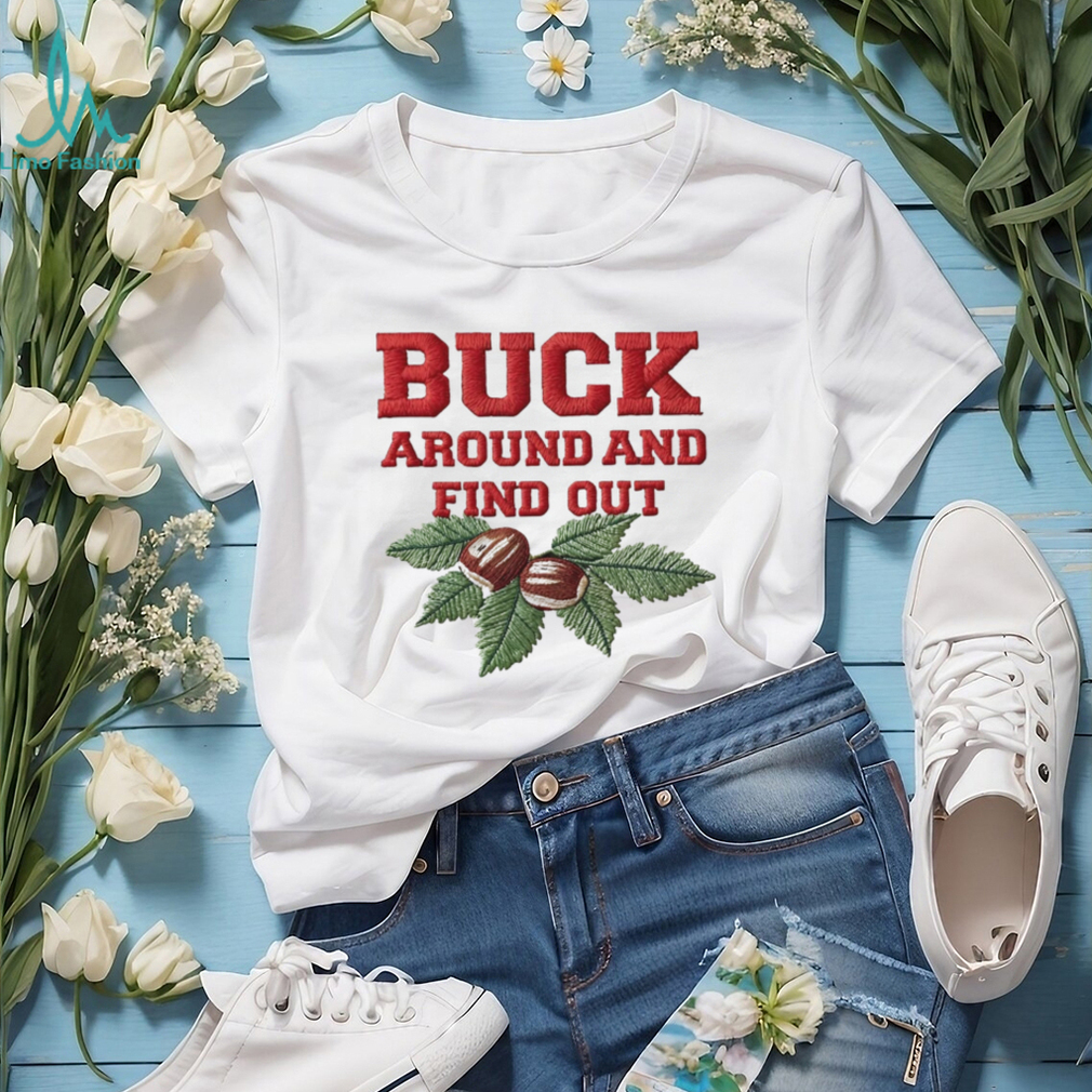 This shirt is more than just fan gear; it’s a statement. The edgy “buck around and find out” slogan adds a unique twist to classic Buckeyes apparel. Made from a soft and breathable cotton blend, this shirt ensures all-day comfort, whether you’re jumping up and down after a touchdown or just lounging around. The bold scarlet and gray design will make you stand out in the crowd. This shirt is perfect for game days, alumni events, or just showing your Buckeye pride around town.