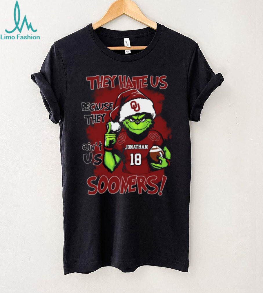 Oklahoma Sooners Custom Name Grinch Family Shirt – Personalized NCAA Football Tee – Funny Christmas Quote “They Hate Us Because They Ain’t Us”