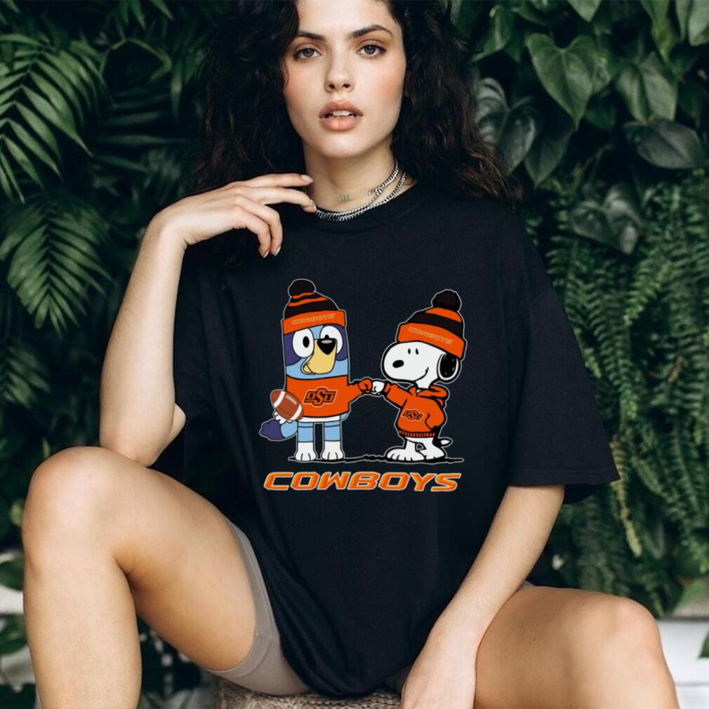 Get ready to cheer on the Cowboys with a touch of holiday magic! This Oklahoma State Cowboys Christmas Snoopy Bluey shirt combines your favorite football team with the beloved characters of Snoopy and Bluey, creating the perfect blend of team spirit and Christmas cheer. Whether you’re tailgating or watching from home, this cute tee will make you stand out in the crowd.
