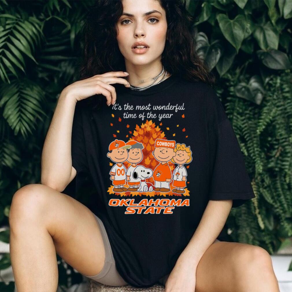 This Oklahoma State Cowboys x Peanuts Fall Shirt is not your run-of-the-mill team gear; it’s a statement piece that sets you apart from the crowd. Pair it with your favorite jeans, a cozy gameday sweater, and your best orange and black accessories. This Oklahoma State Cowboys x Peanuts Fall Shirt captures the lightheartedness and nostalgia of Peanuts while repping your team!. Main selling points include the soft, breathable material for all-day comfort, the vibrant and durable print that showcases your pride, and the unique Peanuts x Cowboys design. The material is a comfortable cotton blend, ensuring a soft feel against your skin whether you’re at the game or just relaxing at home. Available in a range of sizes, it offers a relaxed and flattering fit for every fan.