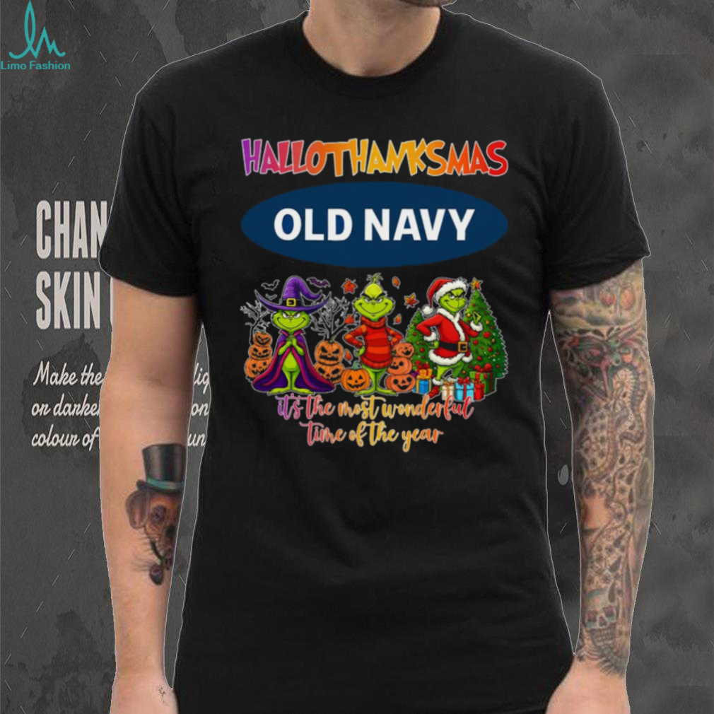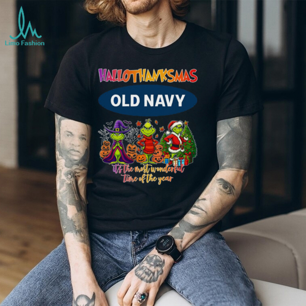 Old Navy Hallothanksmas Grinch It’s The Most Wonderful Time Of The Year Logo 2025 Shirt