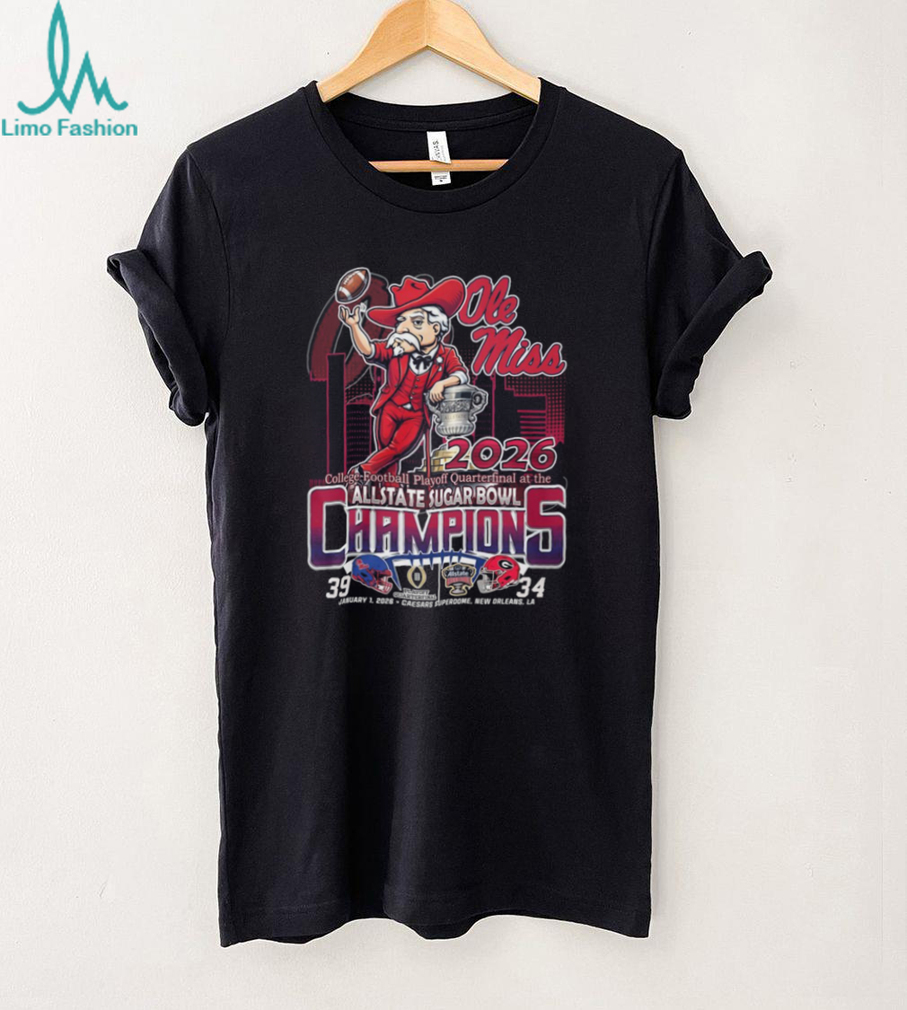👕About Ole Miss Rebels College Football Playoff Quarterfinal 2026 Sugar Bowl Champions T Shirt