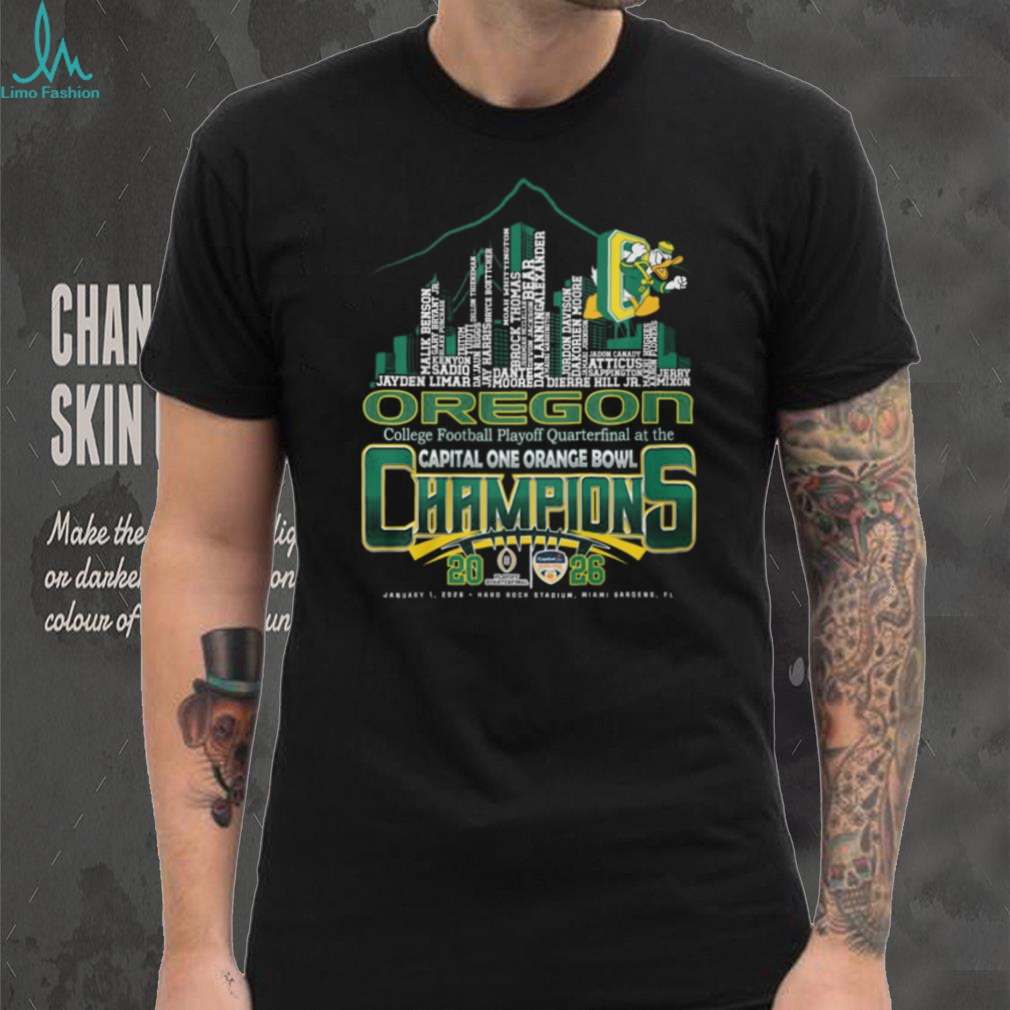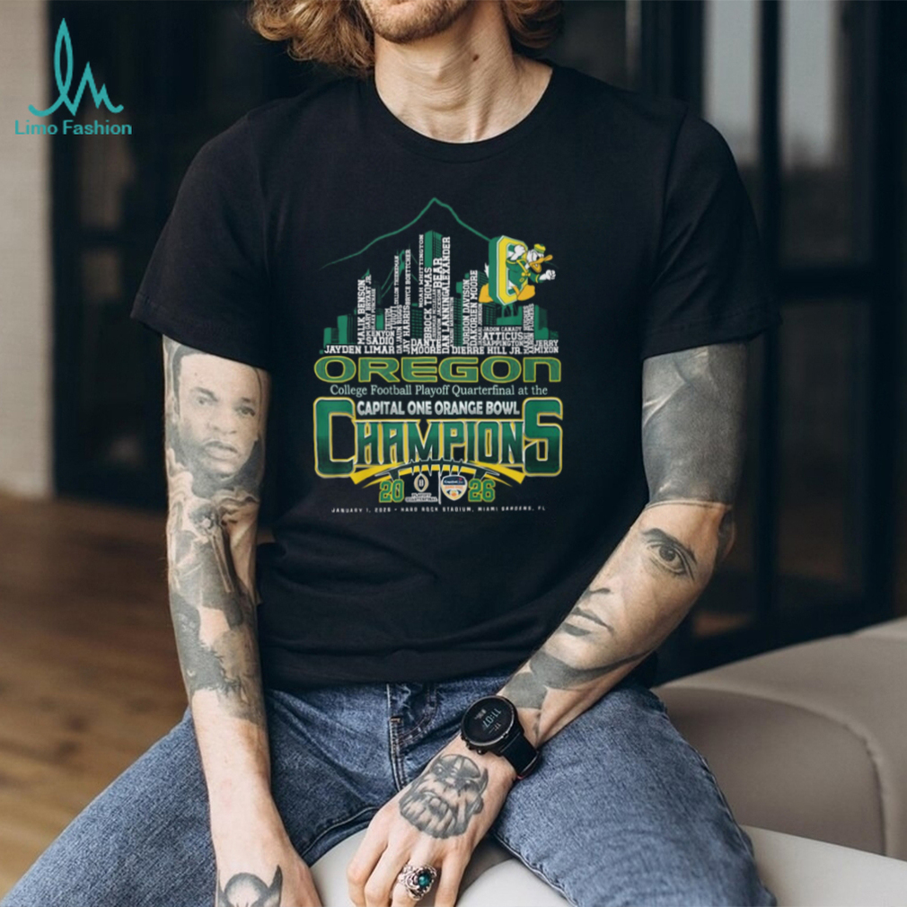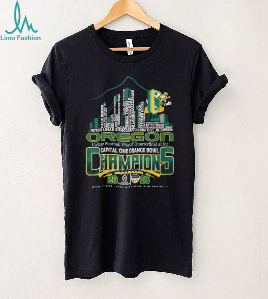 👕About Oregon Ducks College Football Playoff Quarterfinal at the Capital One Orange Bowl Champions 2026 T Shirt.