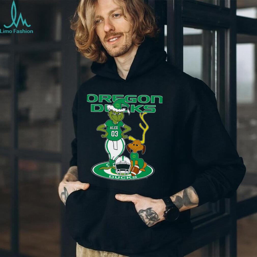 Oregon Ducks Custom Name Grinch with Dog Christmas Shirt – NCAA Football Tee – Personalized Holiday Gift for Fans & Supporters