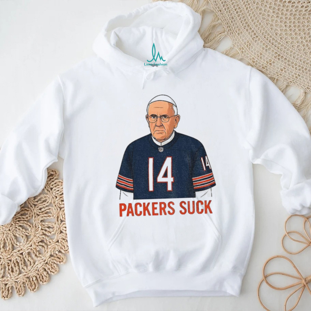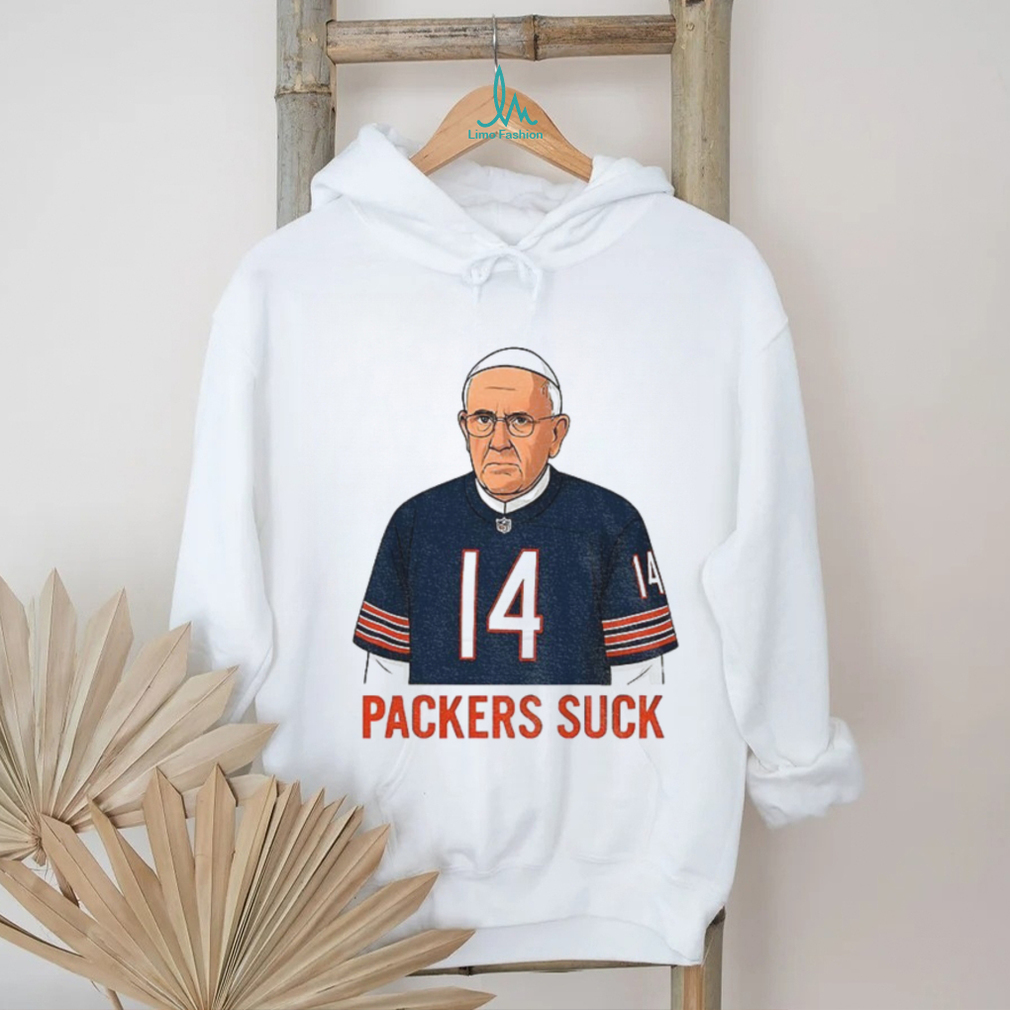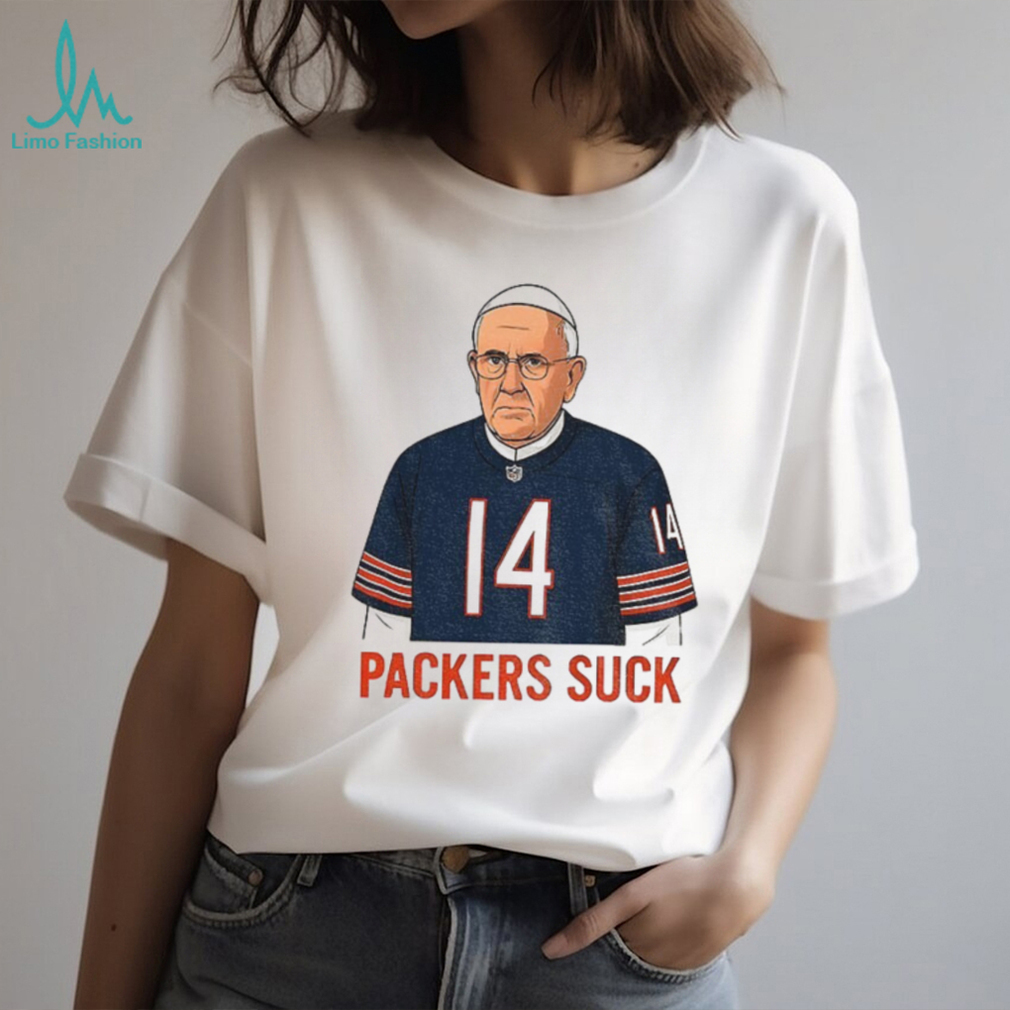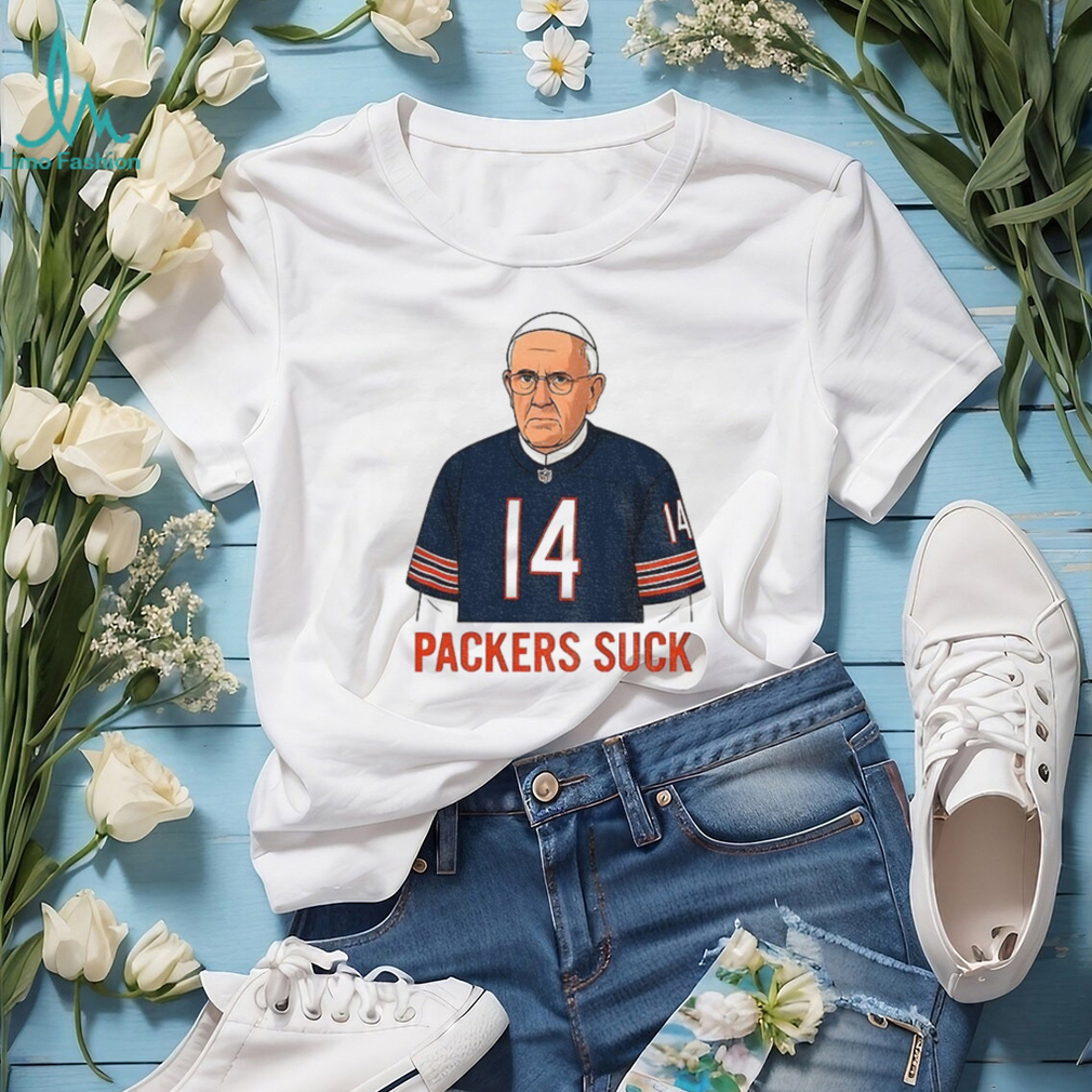 Show your Chicago Bears pride this Thanksgiving and let everyone know how you really feel about the Packers with this hilarious “Packers Suck Pope Da Pope” T-shirt! Perfect for Bears fans who want to add some humor to their holiday celebrations.