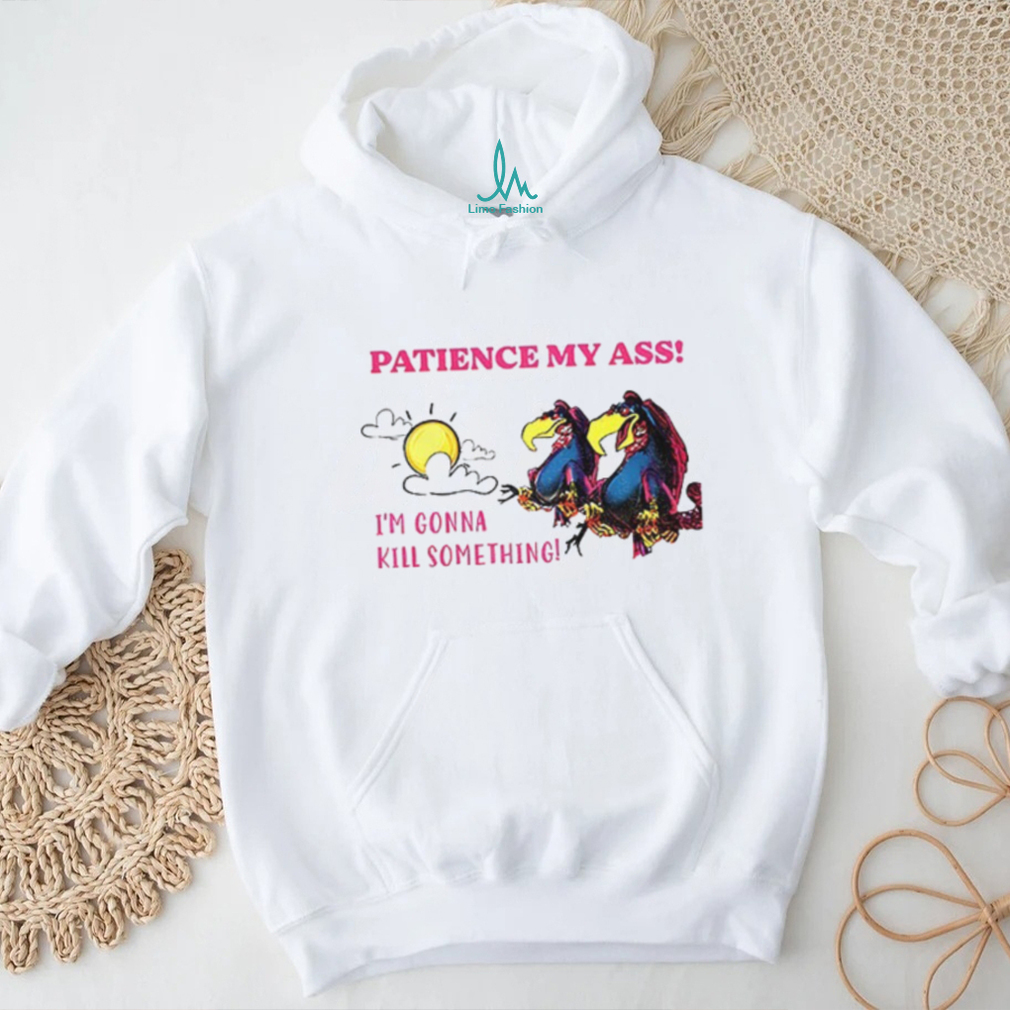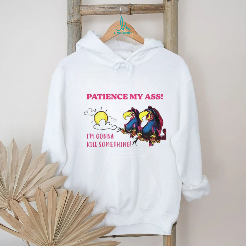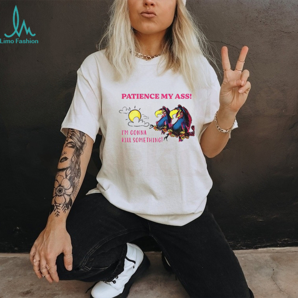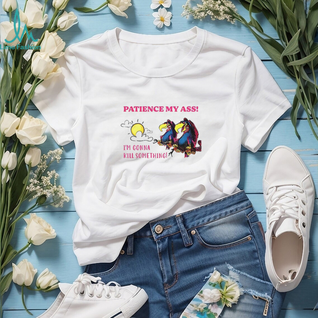 Beyond its bold message, this ‘Patience my ass I’m gonna kill something shirt’ stands out for its soft, comfortable fabric, making it a go-to choice for everyday wear. The durable print means your humorous declaration will last through countless washes and wears. It’s perfect for those casual Fridays, a relaxed weekend, or even a daring gift for that friend who shares your unique brand of humor. Pair it with your favorite jeans for an effortlessly cool look. This tee isn’t just a garment; it’s a way to let the world know you’ve reached your limit with a smile.