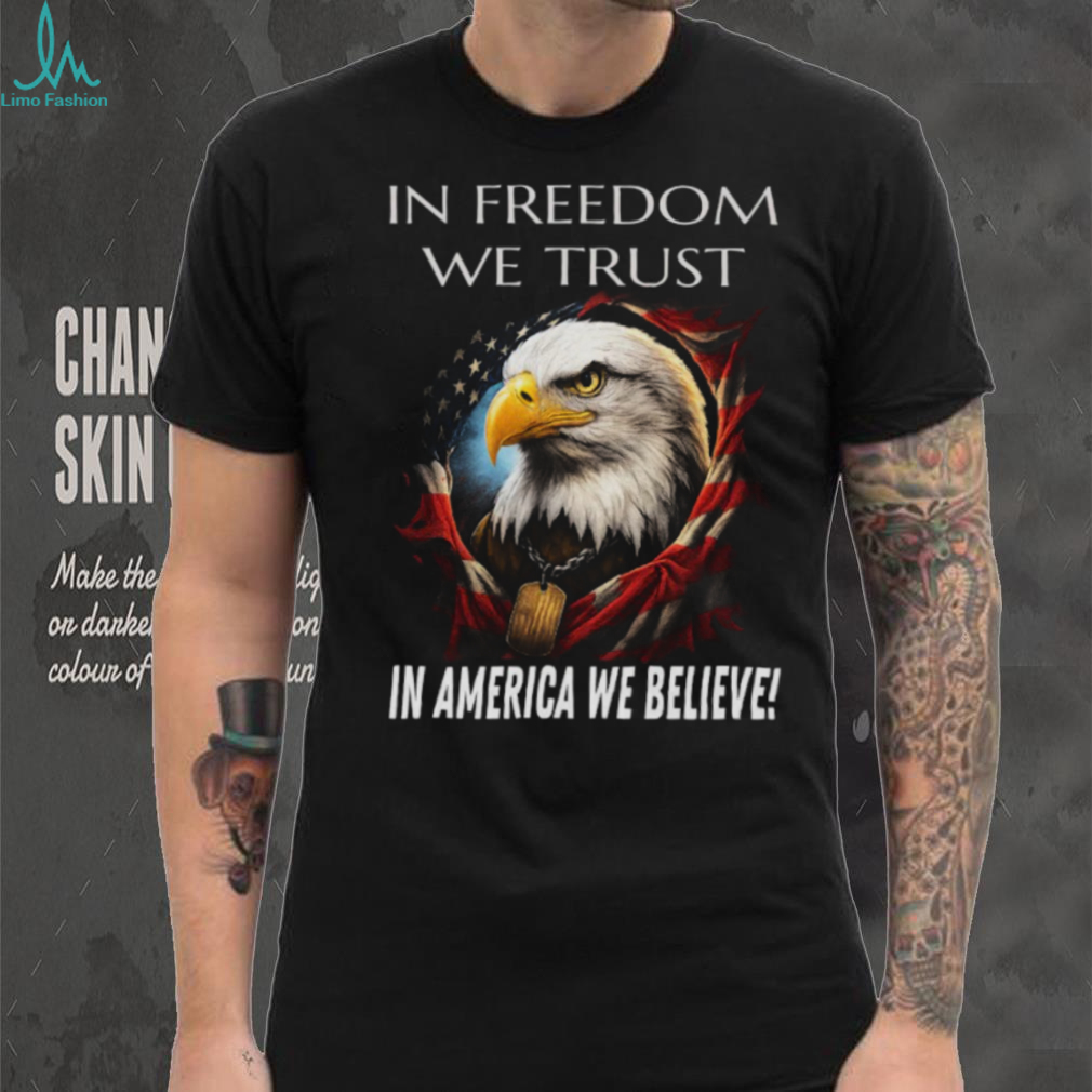 (Patriotic American Eagle “In Freedom We Trust” Black T Shirt)The 2026 World Cup is being shared by the U.S., Mexico, and Canada mainly because it’s going to be huge—48 teams, way more games, and way more logistics. Hosting that alone would be a nightmare, so they teamed up and split the load. Some have suggested moving the cup to Brazil or maybe to China, somewhere where a world competition is regarded as an asset and not as a threat. Well, my suspicion is that an official boycott by the governments of other nations is not likely at all, and whichever teams qualify for the Cup will show up and play. Remember, the World Cup will be held in Canada, the US, and Mexico, so a boycott makes little sense as it impacts three host countries. Some of the things they agreed to do was streamline airports, Patriotic American Eagle “In Freedom We Trust” Black T Shirt, and ease Visa requirements for some countries. The second Trump administration said that it was a bad deal because of Biden and changed its mind.