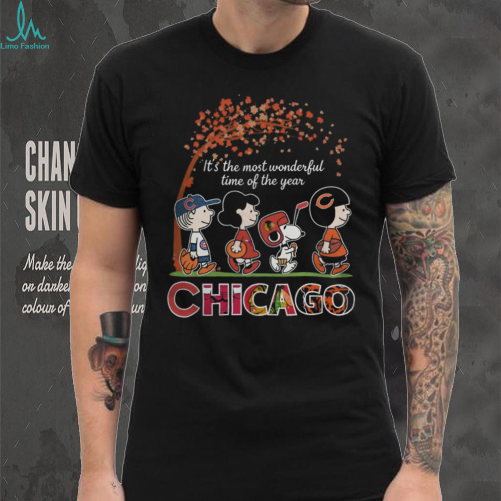 Celebrate the holidays the Chicago way with this Peanuts It’s The Most Wonderful Time Of The Year Chicago Sports T Shirt! Imagine the scene: it’s game day in Chicago, snow is falling, and you’re sporting this unique tee that blends the beloved Peanuts gang with your favorite Chicago sports teams. It’s not just clothing; it’s a conversation starter, a festive statement piece, and a cozy way to show your love for Chicago and the holiday season.