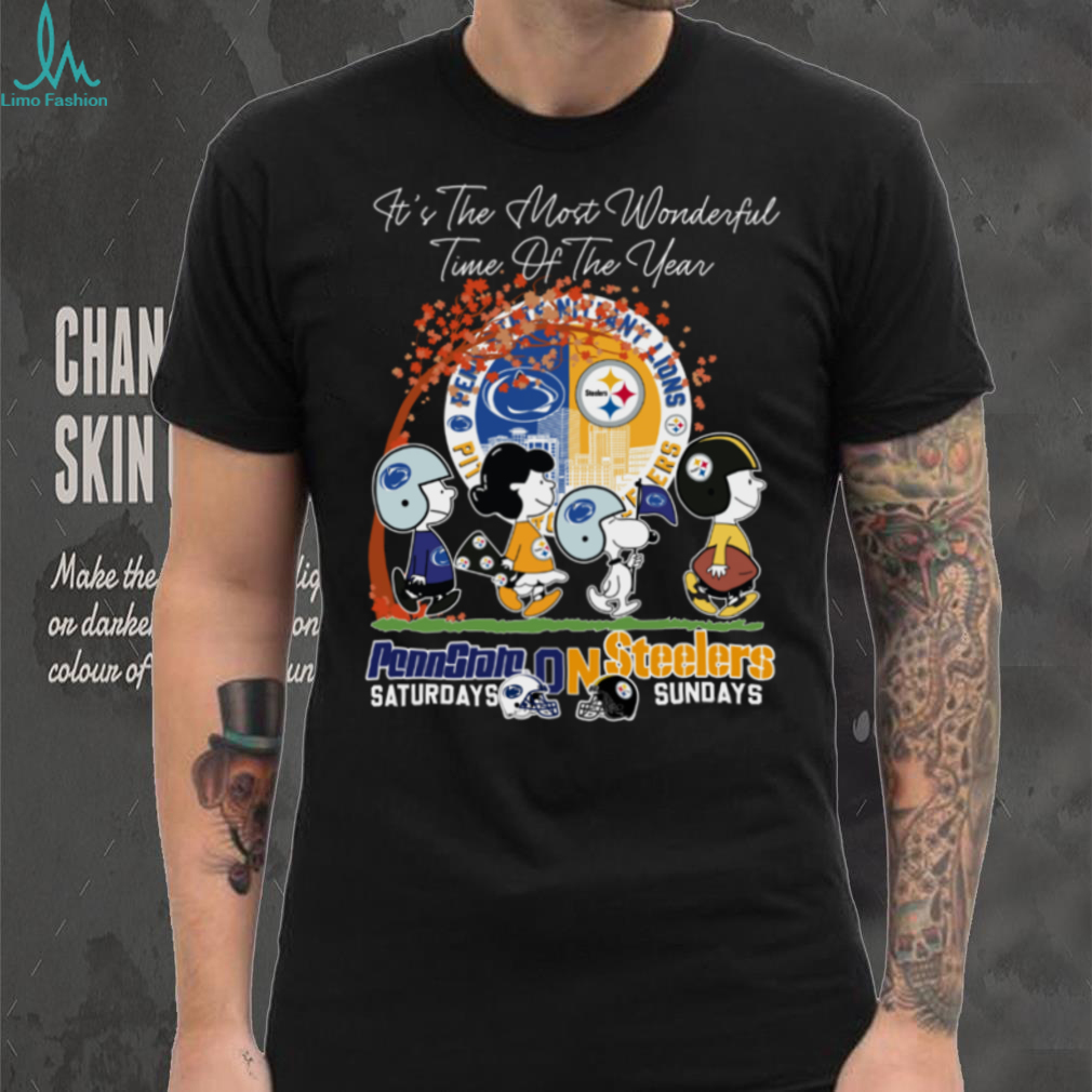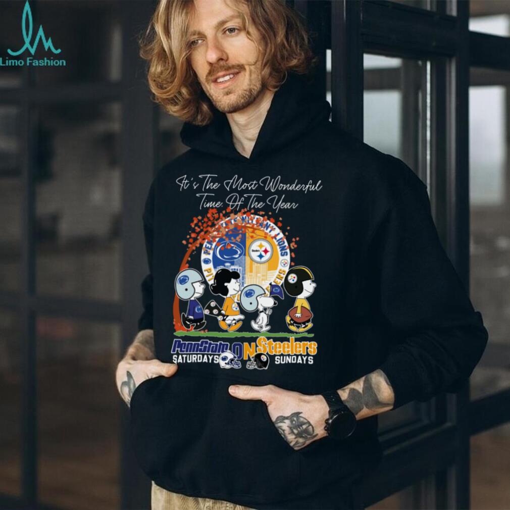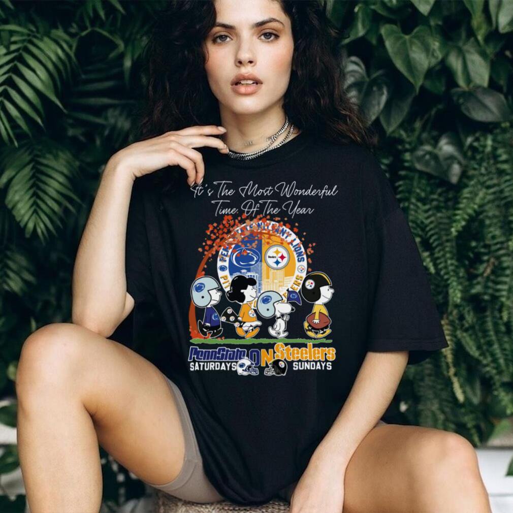 With each Peanuts It’S The Most Wonderful Time Of The Year Penn State Saturdays On Steelers Sundays Shirt, you’re contributing to creating a green tree. To keep your shirt looking its best, machine wash cold, inside out, and tumble dry low. Avoid ironing directly on the design to ensure it stays vibrant for years to come.